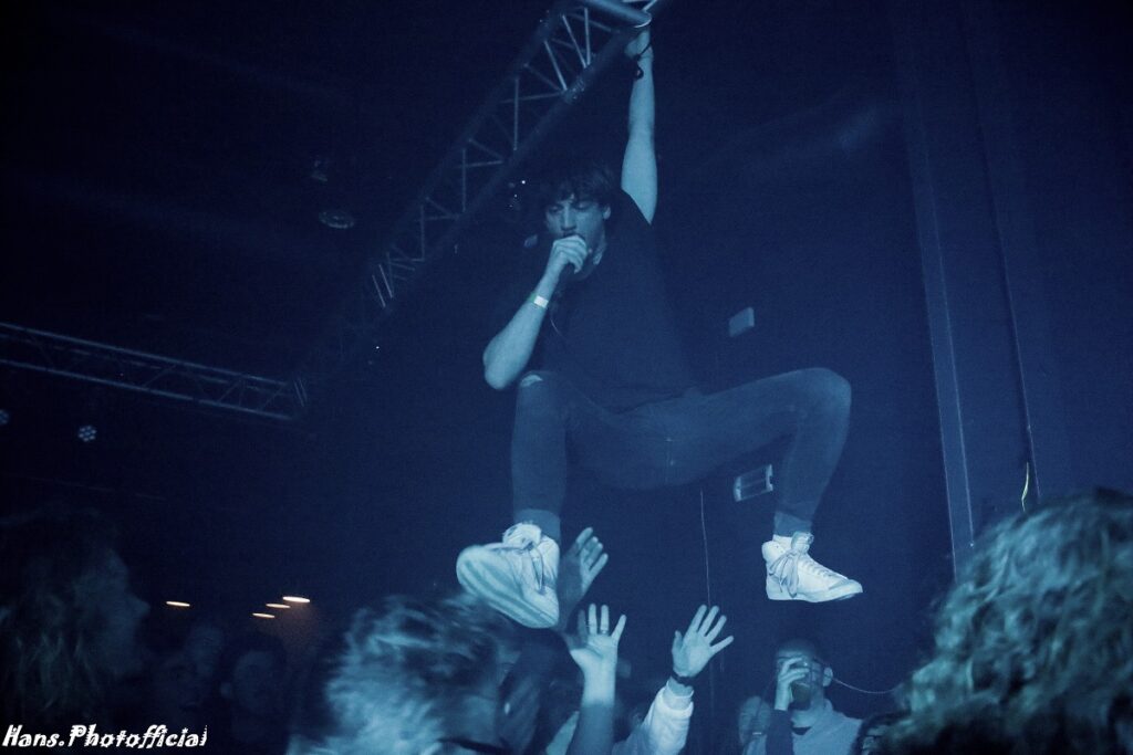 De mannen van Ronker hebben op korte tijd al behoorlijk wat furore gemaakt, getuige daarvan de afgeladen volle zaal. Jean en Bram smeten zich volledig op gitaar en bas, Bennie mepte zich het pleuris achter de drumvellen en de one-man-show van zanger Jasper uit Gent wettigde het predicaat “frontman om vrolijk van te worden”. Refereren aan de Bleach-sound van dat bandje uit Seattle van weleer kan altijd op applaus rekenen en het eerste deel van de set was zo een grungy postpunk met veel weerhaken. Jasper moet in zijn vrije tijd workshops parcours organiseren want elke halve tegel ruimte is goed genoeg om een hoogteparcours uit te dokteren. De man liep eigenlijk onafgebroken risico op enkelverstuikingen en erger.