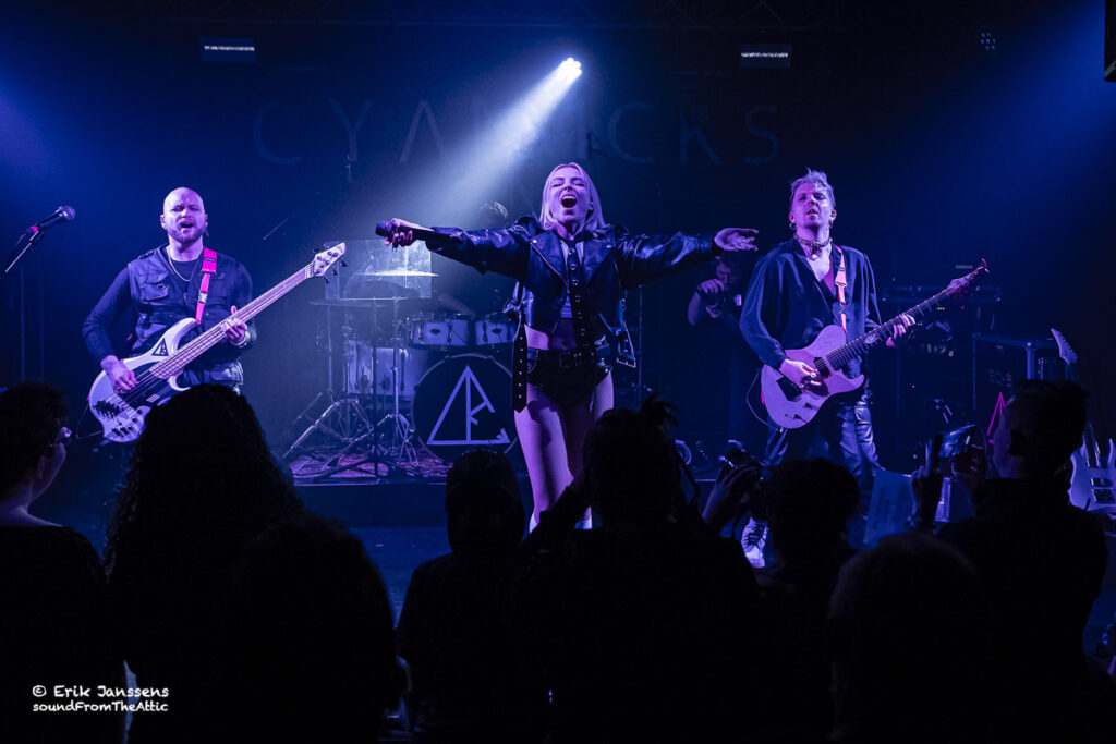 De vierkoppige band Cyan Kicks uit Helsinki heeft furore gemaakt met hun hitsingles en uitverkochte shows. Ze staan bekend om hun unieke mix van zware rock, popmelodieën en elektronische elementen, wat resulteert in een modern en onderscheidend geluid. De band bestaat uit: Susanna Alexandra (zang), Niila Perkkiö (gitaar), Leevi Erkkilä (bas) en Pietari Reijonen (drums).