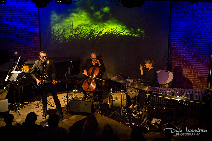 Daan (zang, gitaar en piano), Isolde Lasoen (drums, vibrafoon, klokken, trompet, zang) en Jean-François Assy (cello, zang) wisten vanaf het eerste nummer de zaal te begeesteren. Voor het openingsnummer pakten ze uit met een aparte versie van Addicted uit het album Victory van 2004, gevolgd door Everglades waarbij Daan droogweg vroeg of er tandartsen in de zaal waren. We zullen het nooit weten. Everglades uit 2013, geïnspireerd op het repertoire van zijn grote voorbeeld, de in 1991 overleden Serge Gainsbourg, oogstte een welverdiend applaus en de zaal was meteen mee en op weg gezet naar een sfeervolle avond. Zei Daan niet ooit dat als hij teksten schrijft hij zich altijd afvraagt wat Gainsbourg ermee zou doen. Ashtray en Brenner zetten de forse aanloop in naar Crawling from the Wreck. En dat laatste nummer mogen we letterlijk nemen want Daan belandde in 2007 in Heist met zijn wagen op zijn dak en bengelde aan zijn ceintuur ondersteboven. Maar zijn harde schijven waren gelukkig gered.