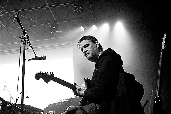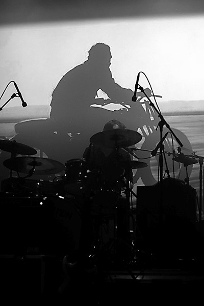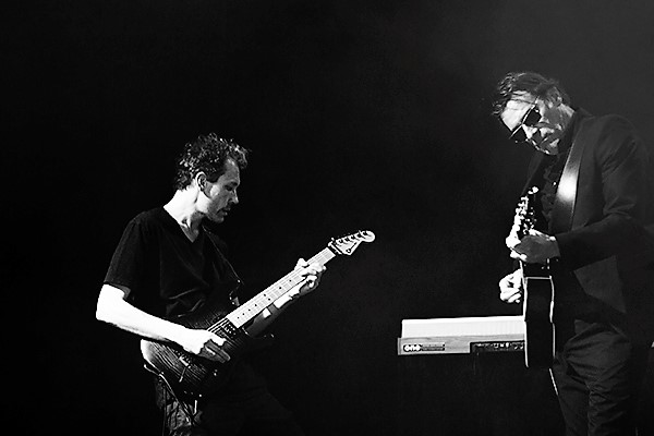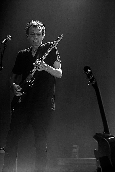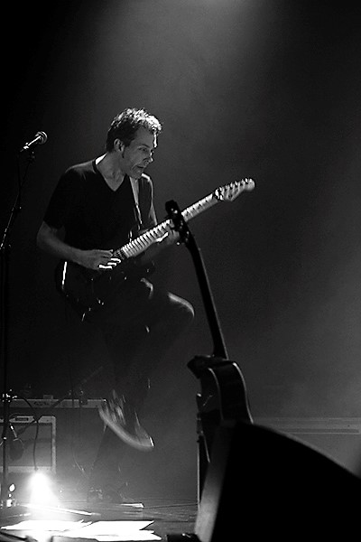 Vooraan Trouvé, Stuyven en Elko Blijweert. Elk zijn eigen stijl en wereldje. Rudy Trouvé is de “inspirator”, hij zit rustig op zijn stoel omgeven door een aftandse versterker en instrumenten. Speelt gitaar met een ronddraaiende ventilatortje. Drukt af en toe op een kleine synth. Speelvogel en onzichtbare ringmeester. Aan de andere kant de vleesgeworden gitaar Elko Blijweert. Springerig. Perfect. Gitaarlijntje hier, gitaarlijntje daar. Waanzinnige riffs en solo’s, schone klanktapijten. In het midden de heer Stuyven. Vijftig inmiddels en nog steeds dealer in sexappeal. Ongrijpbare ontsnappingskunstenaar. De ene song een charmante crooner, de andere vervelt hij tot rocker met stoere basgitaar, in de bindteksten relativerend. Achter hen Karel de Backer op drums. Wouter van Belle op synths en soms bas. En nog een extra synth.