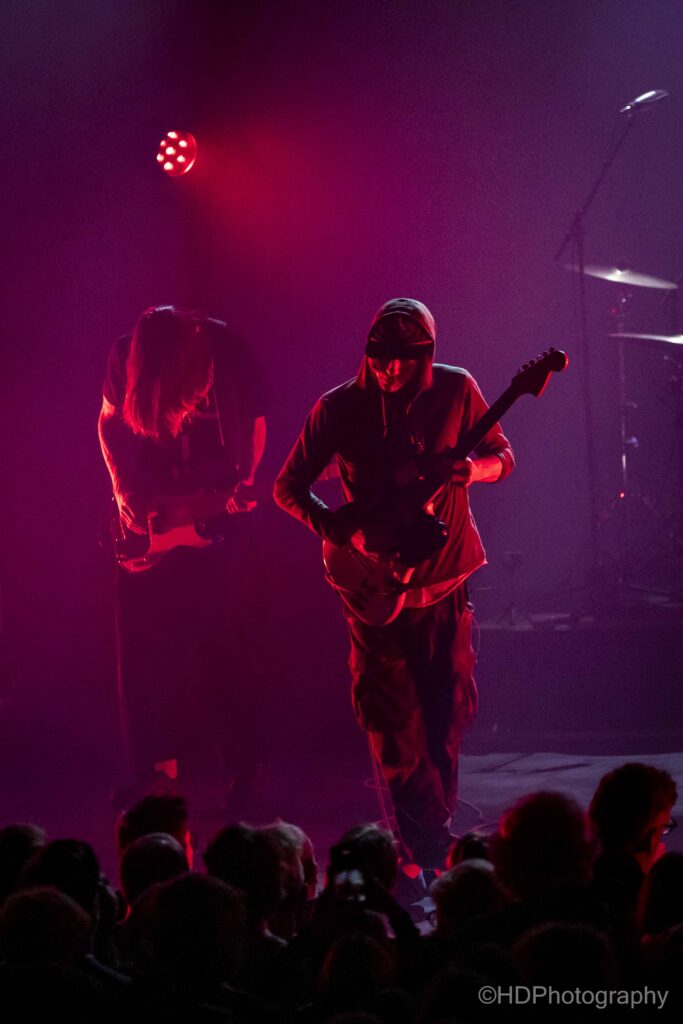 “Will the real Slim Shady please stand up?” Dit lazen we op het t-shirt van zanger Niels Elsermans van het Antwerpse Disorientations. Ze mochten na Tivoli, ook in de AB openen voor DIIV. En dus bevonden ze zich plots voor een volle grote zaal rechtstaande mensen in Belgiës mooiste muziektempel. En ze deden dat goed met hun postpunk met newwave-invloeden, stevige gitaren, goede klank (weinig licht) en een prima frontman, die kwaliteit in zijn keelgat huisvest. Ondersteund door een strakke, introverte band, bracht Elsermans een potige selectie uit de oudere en enkele nieuwe nummers (o.a. Not Here) van het te verschijnen Lost Today (uit bij Pias op 19 april 2024). Nog te zien in de Trix op 10 mei, en daar zal nog wat meer volk opdagen, na deze prima prestatie met Close To Disappearing als afsluiter.