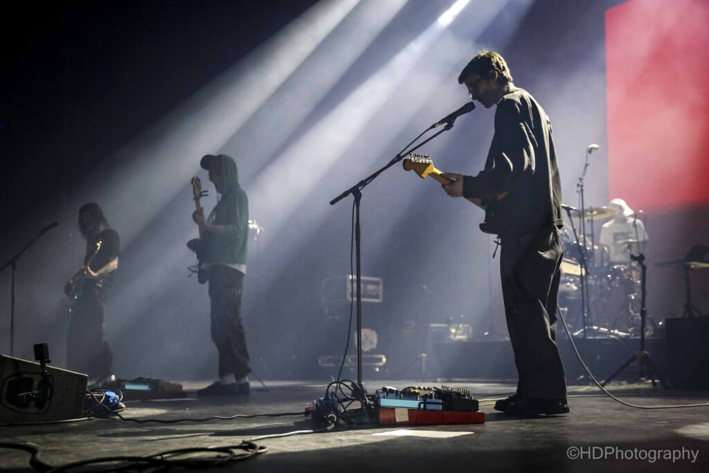 Voor DIIV startte, werden we met een video ondergedompeld in Soul-net, een Orwelliaanse parodie op de welzijnsindustrie die geld verdient aan het behandelen van symptomen, zonder de oorzaken te willen zien in onze wereld die zichzelf vakkundig in de vernieling rijdt. “Soul-net offers transformative solutions for personal and societal issues.” Zo werd het concert van DIIV aangekondigd – door een AI-aandoende anchor – als een ervaring die je leven zal veranderen (maar de wereld niet).