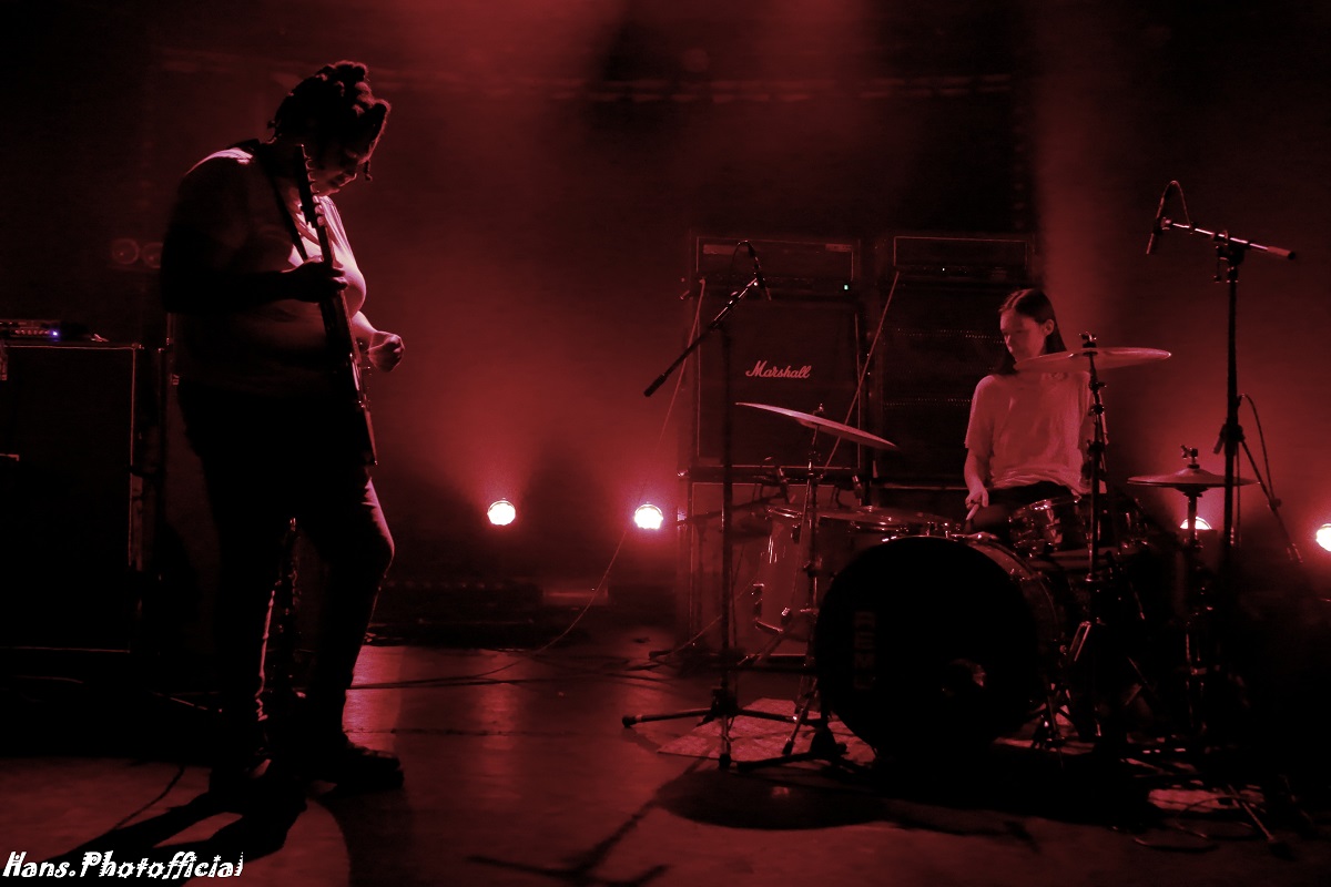 De door Von Stroheim opgebouwde mystieke sfeer verdween echter in het niets en verging in een vuurrode gloed toen Divide And Dissolve het podium betrad. Sylvie Nehill nam plaats achter de drums en een vrolijk lachende Takiaya Reed greep een saxofoon (een sopranino voor de kenners) en bespeelde die een paar seconden waarbij ze de sound in een loop omzette die aan een bezwerende paringsdans begon met dissonante synths op tape. Dit werd een constante tijdens het optreden waarbij bijna elke song op gang gedrumd werd na een ‘saxstart’. Beide Australische dames leken wel versteend tot ze plots wat begonnen te keuvelen en aan de versterkers achter Nehill frunnikten. Sylvie begon aan haar Olympische drummarathon toen Takiaya de snaren van haar doommetalgitaar voor het eerst beroerde.