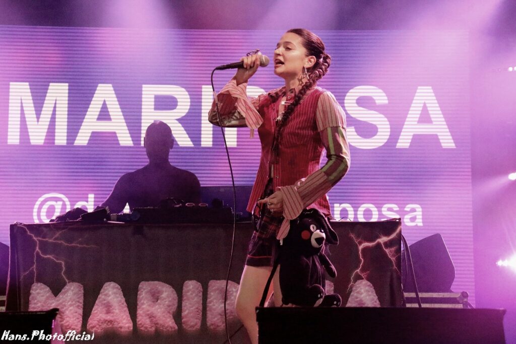 Terug naar Le Labo voor de komst van een sprookjesfiguur. Mariposa had een backdrop mee waarop de vindplaats van haar socials een concert lang te bewonderen viel. “Dondestamariposa” deed ons afvragen waar Mariposa zich bevond, welja, dat was nogal duidelijk. Voor onze neus!
