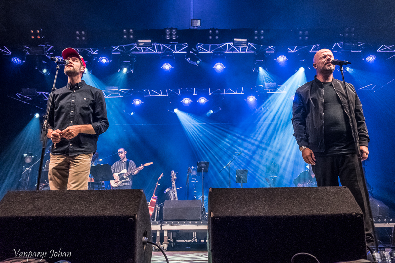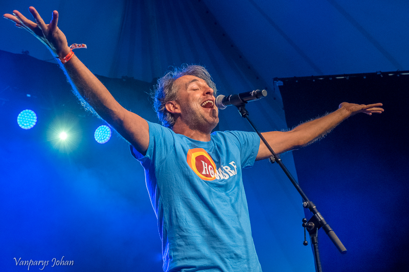 Het was een spetterende show met afwisselend nummers van voornoemde bands maar ook mash-ups van hun tofste liedjes. Met Wannes die samen rapte met Brihang, Stephanie Callebaut die nog maar eens in de verf zetten wat een oerschreew er wel niet in haar verborgen zit. Niet-West-Vlamingen zoals wij hebben zeker en vast niet alle (aangepaste) teksten begrepen, maar dat is onbelangrijk. Sara Vandeurzen sprong als Kenji Minogue zingend en scanderend in het publiek en ging crowdsurfend gewijs tot diep in de tent tot ze riep “’k Moe terug naar ’t podium”. Als allerlaatste bisnummer kregen we uiteraard ook nog Min Moaten in een hele langgerekte versie en vielen menigeen knuffelend in mekaars armen.