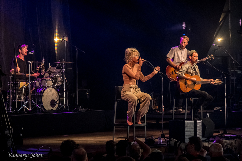 Na deze muzikale pauze zaten we klaar voor Guido Belcanto, de man die het levenslied terug op de kaart zette. Hij zingt teksten die alleen werken als hij ze zingt. Over hoe hij verliefd is op de vrouw van de bakker of over hoe vrouwen het moeilijk hebben in het leven omdat hun borsten te groot of te klein zijn. Het publiek was deels samengesteld uit mensen die zij oeuvre echt kennen en deels uit mensen die zicht verwachtten aan een Schlagerfestival waar het bon-temps is om met de protagonisten te lachen. Van bij het opkomen werd de frèle stem van Guido dan ook overstemd met jongelui die luidkeels zijn naam scandeerden. Guido leek dat niet helemaal leuk te vinden maar liet zich niet van zijn stuk brengen en antwoordde door zeer energetische versies te brengen van liedjes als La Pasionara, De Pechstrook Van Het Leven en Spookrijder in de Nacht. Er was veel volk aanwezig en Guido vroeg of die echt wel allemaal voor hem waren gekomen. Nostalgisch als hij is vroeg hij ook om samen een sfeer te creëren zoals hij die bij de vorige passage in 2016 had meegemaakt met het liedje Na de Dood Keren Wij Weer. Er waren veel mensen ook toen aanwezig blijkbaar, want iedereen wist direct wat gedaan. Guido genoot en wist niet van stoppen want hij ging ruim over de geplande speeltijd. Erg vonden we dat helemaal niet want zo kregen we ook een reeks liedjes samen met Little Kim (Kadril). We kregen onder meer Toverdrank en een magistrale versie van De Wilde Roos ( jawel , een cover van Nick Cave).