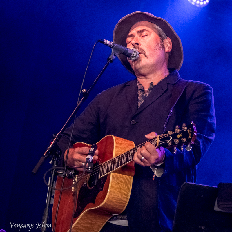 Onze muzikale wandeling bracht ons vervolgens bij Findlay Napier, een schotse troubadour. De man brengt moederziel alleen mooie en inventieve liedjes op gitaar. Tussendoor vertelt hij verhalen van zijn omzwervingen. Zo vertelde hij dat dit nog maar zijn tweede uitstap was in België hoewel hij wel een warm hart heeft voor ons landje. De vorige keer verwekte hij immers zijn dochter na het consumeren van heel wat kriekbier. Sindsdien is hij voorzichtig met het drinken van Kriek. Een ander verhaal ging over zijn song 5th Avenue dat helemaal is samengesteld uit slogans die in reclamebladen zitten, over wasproducten en cosmetica dus. Leuk gevonden. Het publiek genoot en hing aan z’n lippen.