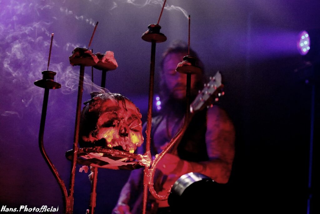 In de grote zaal was het de beurt aan het Brusselse psychedelische doom en blackmetal gezelschap Wolvennest dat vorig jaar het album The Dark Path To The Light uitbracht. Het is ondertussen al de vijfde langspeler van dit bijzondere zestal. Tijdens het optreden hing de geur van wierook in de zaal. Die paste helemaal bij de donkere sound van Wolvennest die super luid speelden. De stem van zangeres Shazzula kwam de eerste nummers dan ook een nauwelijks uit boven het geluid van de band. Gelukkig werd het volume uiteindelijk aangepast waardoor we een knap en indrukwekkend geheel kregen. Het publiek knikte of headbangde goedkeurend met elk nummer mee. Wij hoorden veel gothic invloeden die deden denken aan The Fields Of Nephilim. Zeker met de occulte knipoog en duistere video’s was de vergelijking nooit ver weg.