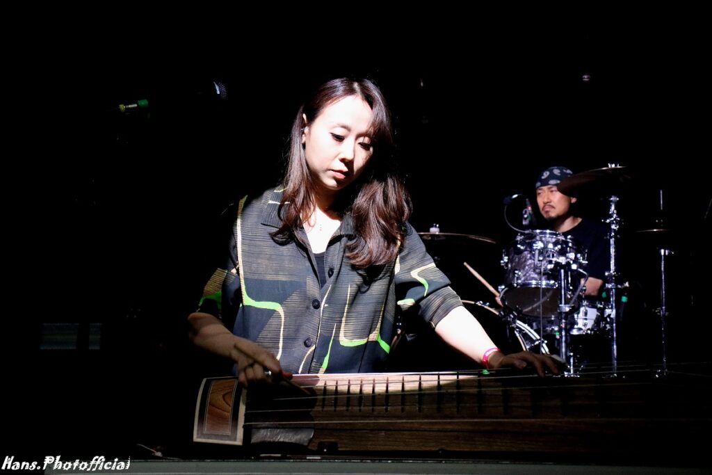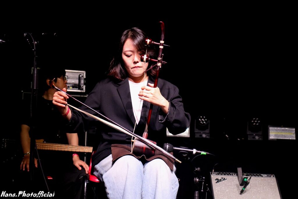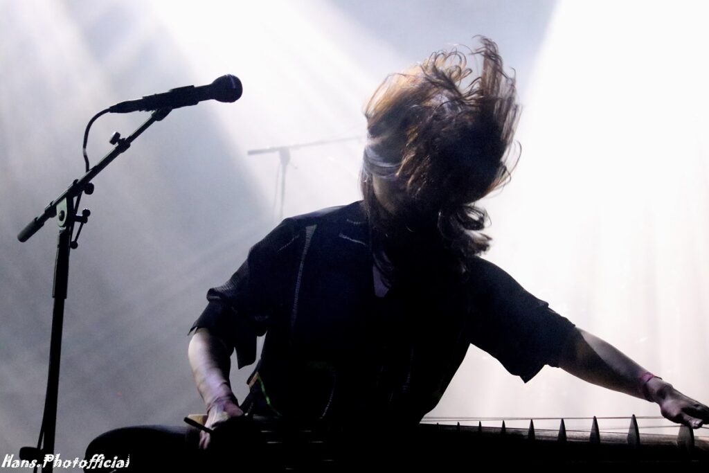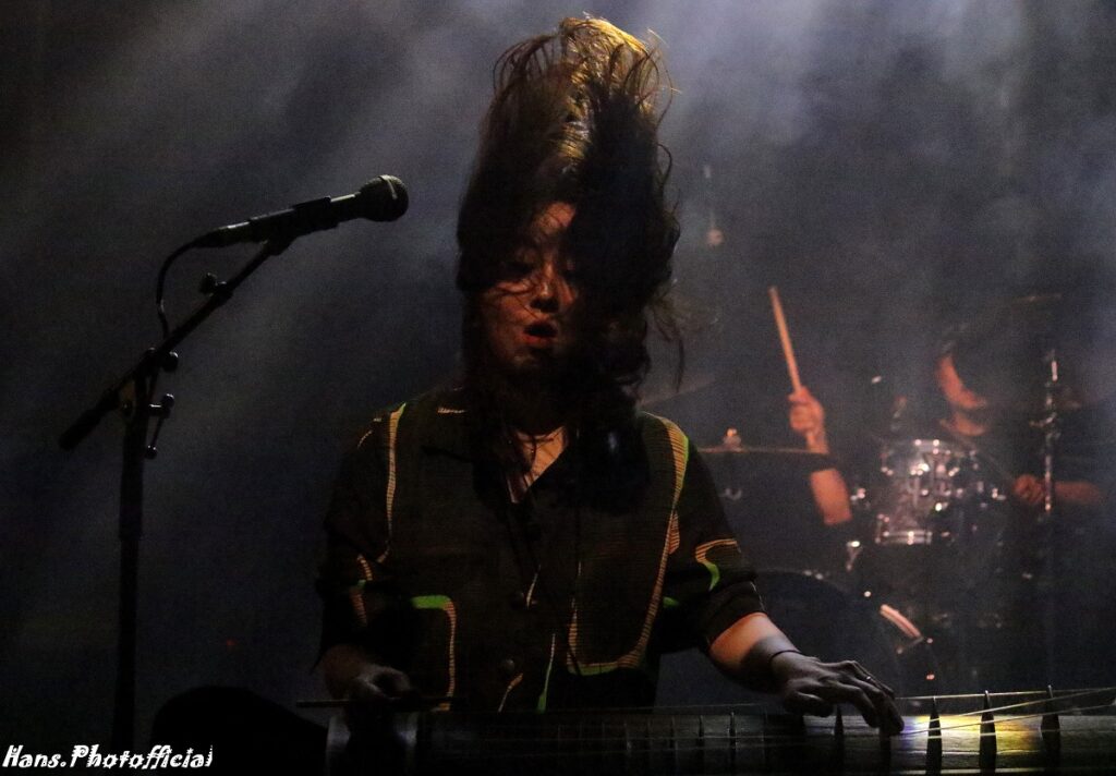 Dunk! probeert al jaren de Zuid-Koreaanse postrock iconen van Jambinai te pakken te krijgen en dit jaar is dat eindelijk gelukt. Drie jaar geleden stond deze band al ingepland voor Dunk! maar toen was er corona… Jambinai mixt postrock met postmetal en gebruikt door ook traditionele Zuid-Koreaanse volksinstrumenten bij. De set werd geopend door Eunyong Sim die met veel overtuiging en power de geomungo bespeelde, een instrument dat een heel uniek geluid voortbrengt dat mede de sound van de band bepaald. Toen Bomi Kum met haar haegum (soort viool) inviel samen met de rest van de band, kregen we iets magisch. We werden meegesleept in een intense vurige set waarbij Lee II-woo met veel overgave zijn tekst uitschreeuwde terwijl Kum en Sim met hun backings voor wat subtiliteit zorgden met de mooie samenzang. Het geheel klonk intens en krachtig ook al speelde de band zittend. Van ons mocht de set van Jambinai nog veel langer duren op een festival is daar geen tijd voor.