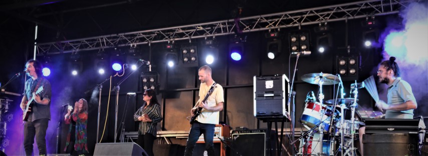Daarom zakten wij af naar het rustige Melsele waar de band wel op de line-up stond van de Dorpsfeesten. Op het nieuwe album wordt het trio bijgestaan door Lara Chedraoui (Intergalatic Lovers), Naomi Sijmons (Reena Riot), Ciska Vanhoyland (Mon-o-Phone), Tessa Vanhees (Partytrashers) en Nina Peeters. Live bestaat het achtergrondkoor enkel uit Vanhees en Nathalie Wijnen (ook verantwoordelijk voor het prachtige artwork van Echoplasm). Aldus werd het podium gevuld met een vijfkoppige band die er ongelooflijk veel zin in had, omdat het al veel te lang geleden was dat ze hun straffe nummers nog eens live konden brengen. Ze brachten dan ook een strakke, energieke set die stevig binnenkwam.