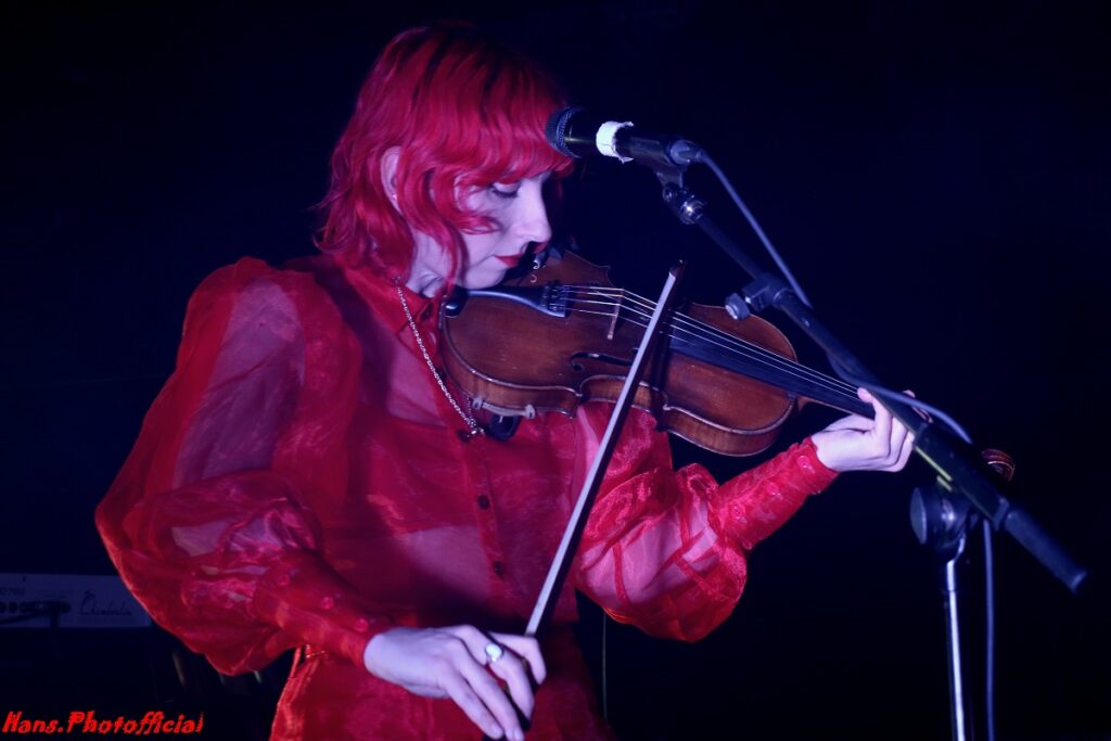 Het werd zo voortdurend van het ene instrument naar het andere grijpen en dan kwamen backing track en stemloops wel aardig van pas. Bijzonder fraai was ook de belichting door Kato Van Het Licht die middels een zijdelings wit licht voor de beste lichteffecten ooit zorgde in de Charlatan. Dat gaf een heerlijk extra cachet aan de rode gloed die van Laena afstraalde. The Choir was een zomers kampvuurmoment waarin ze haar andere troef, haar stem, mooi etaleerde. Ze zong half fluisterend en half hoog maar toch bedaard uithalend wat los van de combinatie viool-gitaar voor een geluid tussen Patti Smith en Lou Reed zorgde. Elk nummer raakte ons enorm. “My songs can be mad or sad but all these emotions are quite okay I guess”.