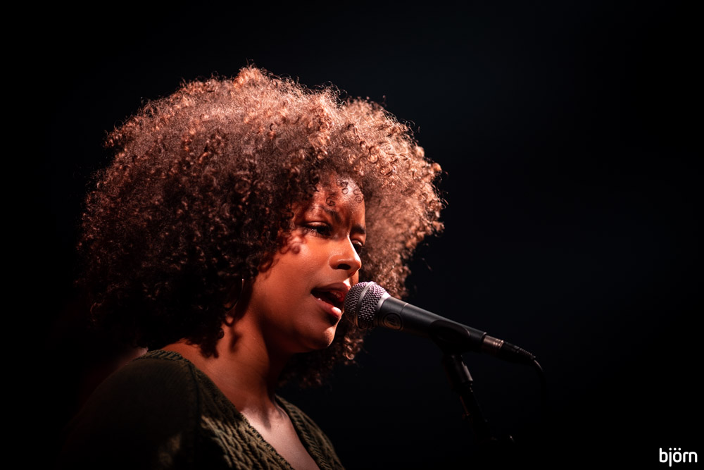 Openen deed de fluwelen stem van Adja Fassa die zich op het podium gewoon ADJA laat noemen. Begeleid door gitaar en trompet bracht ze SambaFassa en To Be Naive, twee nummers uit haar recent verschenen en door ons stevig geprezen album Ironeye.