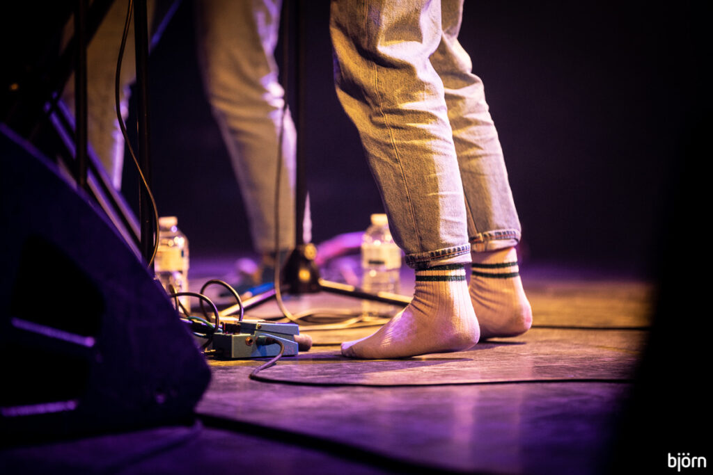 Gek maar ook een beetje geniaal zo klinkt de muziek van Mek’dr’dr. Gebracht op slakommen en kousenvoeten met knotsgekke songteksten en al even onnozele bindteksten. Vooral het nummer over de auditieve hel van iemand anders te moeten horen eten (misofonie), raakte bij ons een gevoelige snaar. Zonder twijfel de meest originele band van de avond maar misschien net iets te ver uit de comfortzone van de jury?