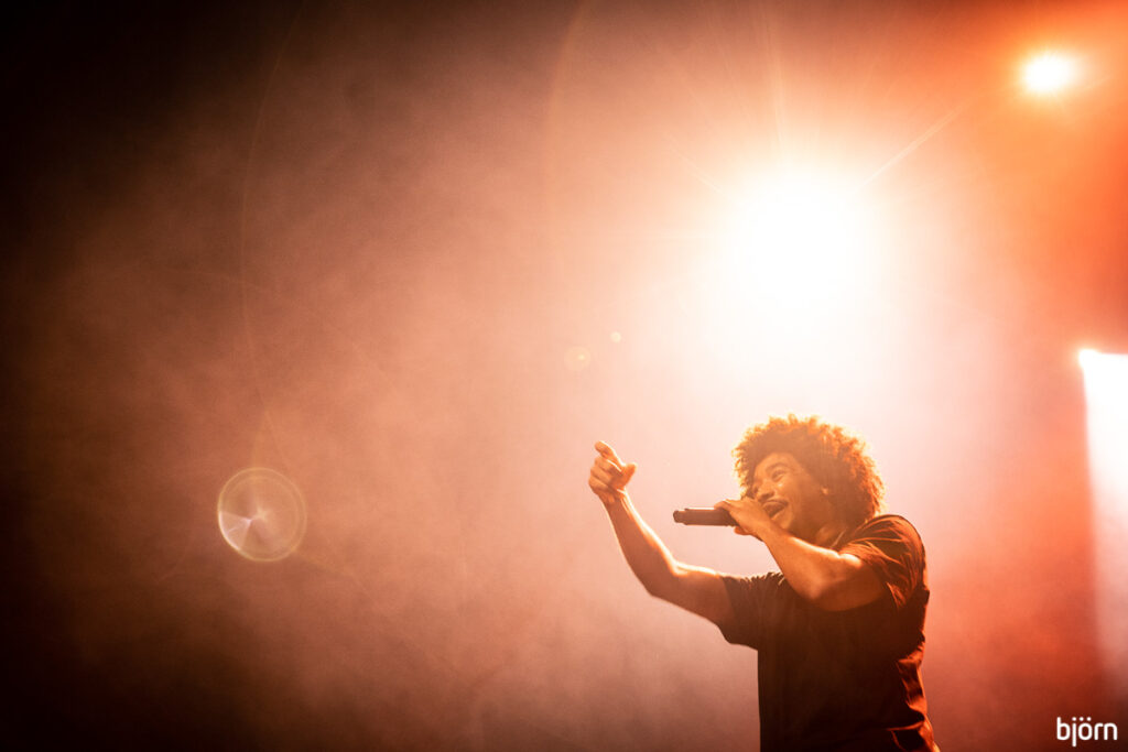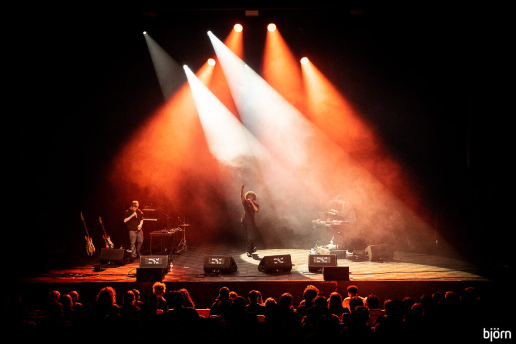 Zelfvertrouwen, oogcontact, de juiste moves op het juiste moment zonder al teveel in de clichés van het genre te sukkelen, zo hebben wij het graag. Wat OHNA echter vooral anders maakt dan je standaard rapper/dj set-up was de combinatie met live gitaar, basgitaar, synth, percussie en het gebruik van een op MPC gebaseerde beatsetup. Niet alleen zorgde dit voor een interessante interactie op het podium het maakte de muziek ook een stuk organischer, minder prefab en ‘echter’. Straf spul!