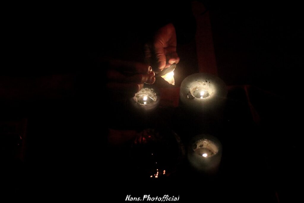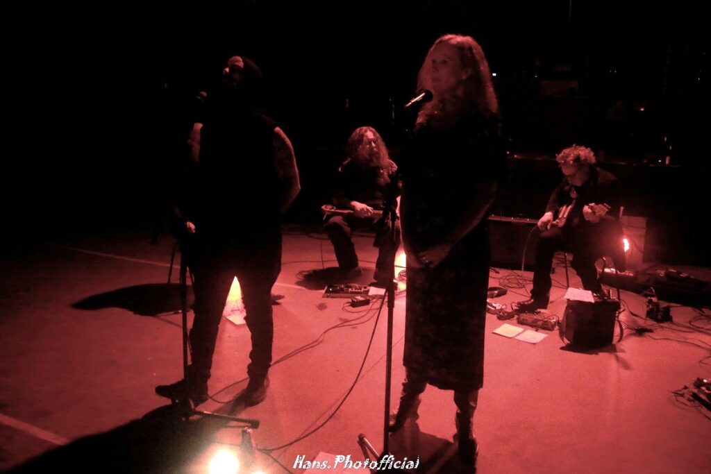 De bandnaam Fleur De Feu heeft Dominique afgeleid van een nummer van het drie jaar oude Grace van haar andere band Baby Fire. Je kan haar voorts ook kennen als bezieler van Von Stroheim en Veda. Als Veda haar rustigste project is, dan is Fleur De Feu het donkerste. Is het om die reden dat de band niet op het podium wilde spelen, maar in de zaal, in het donker? Enkel een streepje rood licht dat vanaf het podium neer dwarrelde in de zaal vermeed dat de concertgangers over elkaars voeten struikelden. Neen dat was niet de reden. Die diende te worden gezocht in wat zich zou afspelen tijdens slotnummer See The Sun. Maar laten we niet op de feiten vooruitlopen.