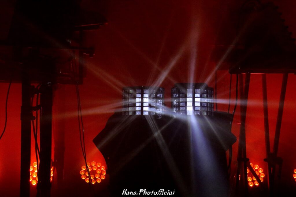 Fortress is een puur elektronisch trio, dat buiten Hanne en haar levenspartner Nils Tijtgat vervolledigd wordt door Joppe Van Wetswinkel. Hanne en Nils geven de doe-het-zelf-markt het nakijken want zelfs de livevisuals zijn van eigen makelij alsook een door Nils geprogrammeerde lichtshow die mits het schrijven van software programma’s perfect synchroon met de songs fonkelde als de mooiste kerstboom. Volgens ons regelde Nils en passant ook de verkeerslichten in Borgerhout en de belichting bij Obituary dat beneden in de grote zaal veel lawijt stond te maken. En leek dat circus een paar honderd meter verderop ook niet verdacht veel op een fort? We mogen van 2025 veel verwachten, want Hanne is halftijds van Antwerpen naar Gent verhuisd om er samen met Nils een mooie, grotere muziekstudio in te richten. Ondertussen was de bar volgelopen met kijk –en danslustigen en kon de intro van Alive worden ingezet.
