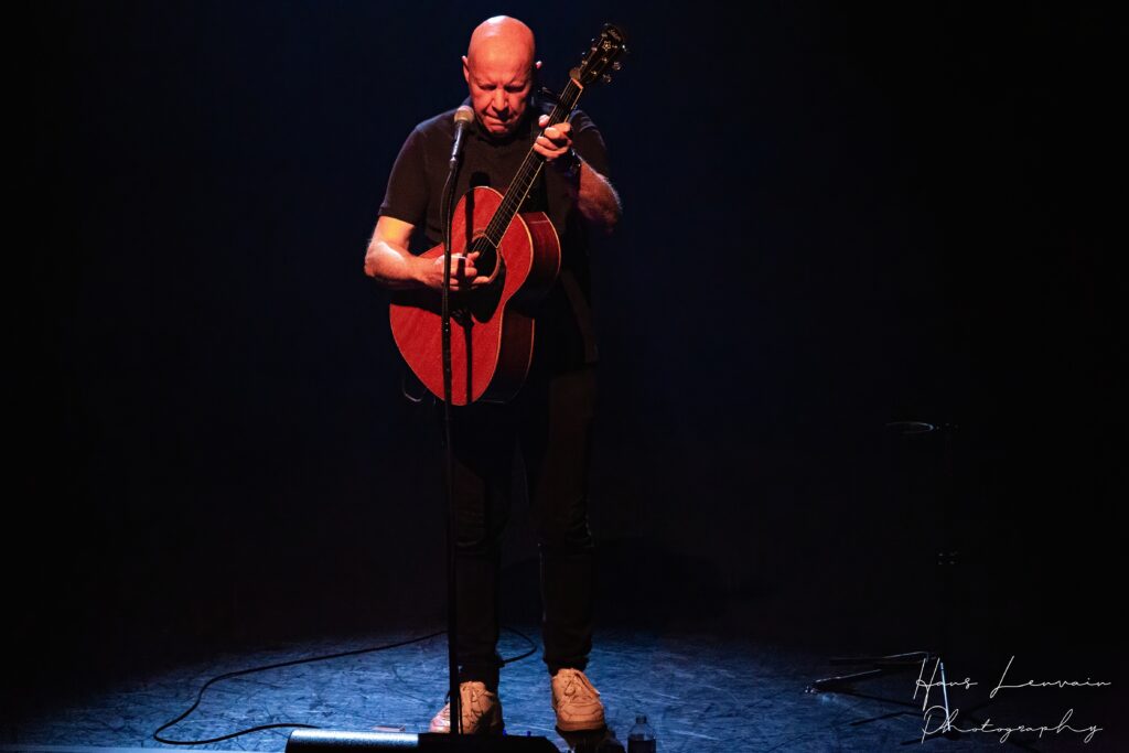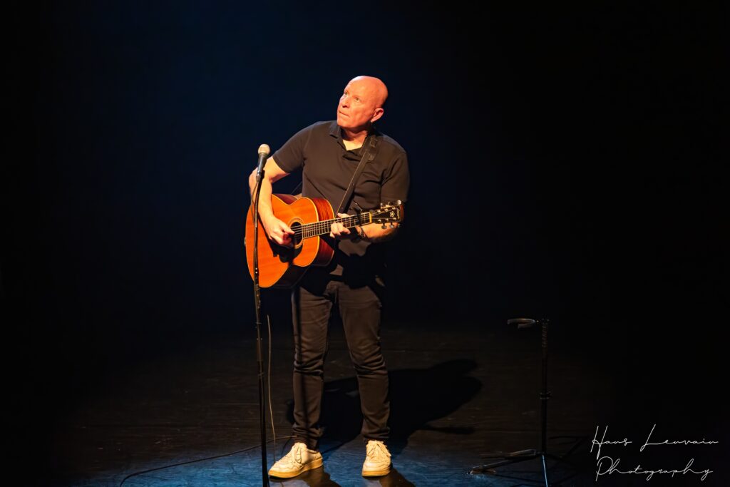 En als om 20u30 de lichten uitgaan, wordt dat ook meteen duidelijk. Als een troubadour komt hij van achterin de zaal naar beneden gewandeld. En troubadours vertellen verhalen. Volledig akoestisch brengt hij gelijk de grootste hit van De Mens: Irene (bijna drie miljoen streams op Spotify).