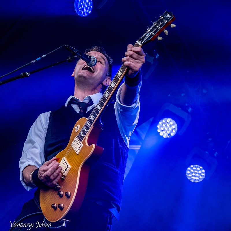 Stichter en frontman Peter Coyne van The Godfathers laat samen met Richie Simpson (gitaar), Wayne Vermaak (gitaar), John Priestley (bas) en drummer Billy Duncanson aan Ieper horen hoe zij reeds 35 jaar op Britse manier rock ’n roll spelen.