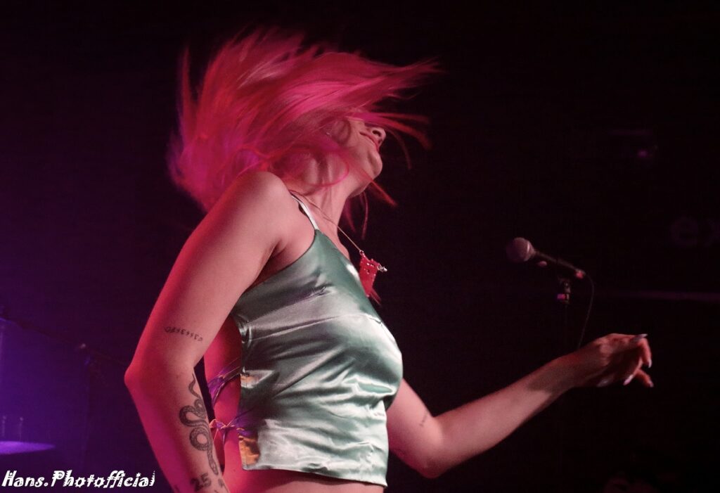Girli stelde haar band voor en zei blij te zijn met hen, een “all female” band die haar in staat stelt onbevangen en onbevreesd te touren in een concertwereld vol macho’s. Het gaf de mannen (die paar mannen dus) een erg onbehaaglijk gevoel want er is niets fouter dan als vrouw keuzes te moeten maken die je door het wangedrag van mannen opgedrongen worden in feite. We willen toch een vierde bandlid aan jullie voorstellen. Monika Wilczynska is haar bevallige tourfotografe en videografe. Op haar socials staat vermeld “probably dancing with my camera on a stage” en dat is geen seconde gelogen want Monika bevond zich de hele tijd op het podium en danste bijna mooier dan de band zelf.