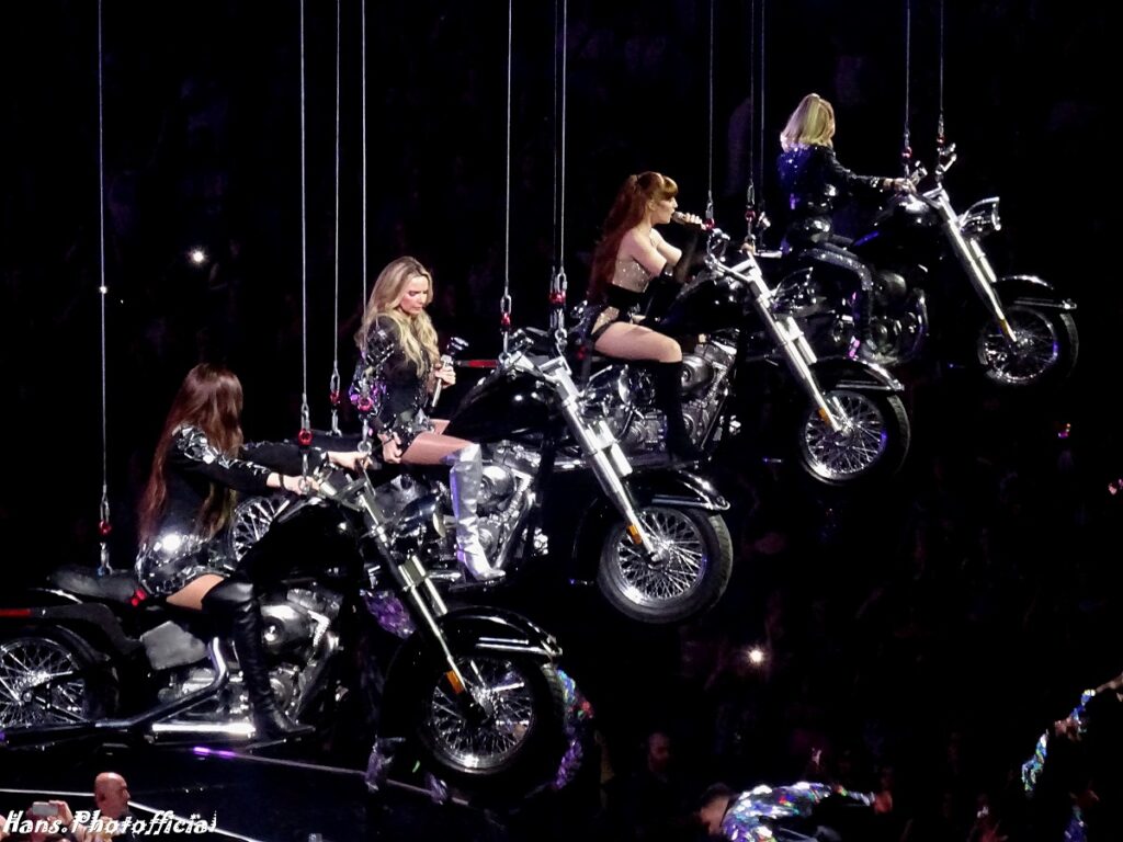 Girls Aloud namen altijd al een patent op het betere stunt- en vliegwerk dus wilden ze deze keer bij de start van Act II en III niet onderdoen. Electrorocker Wake Me Up liet de vier op Harley Davidsons de zaal in vliegen, een referentie aan de 20-jaar oude videoclip uit 2004. Het gruwelijk mooie en ronduit onweerstaanbare Sexy! No No No presenteerde de diva’s opnieuw op een platform maar getooid in robijnrode gigantische glitterhoepelrokken die een Marilyn Monroe-luchtcirculatie stempel droegen.