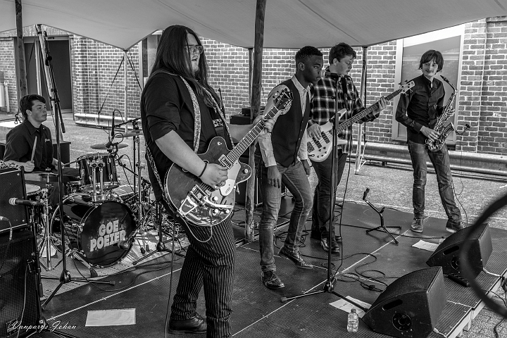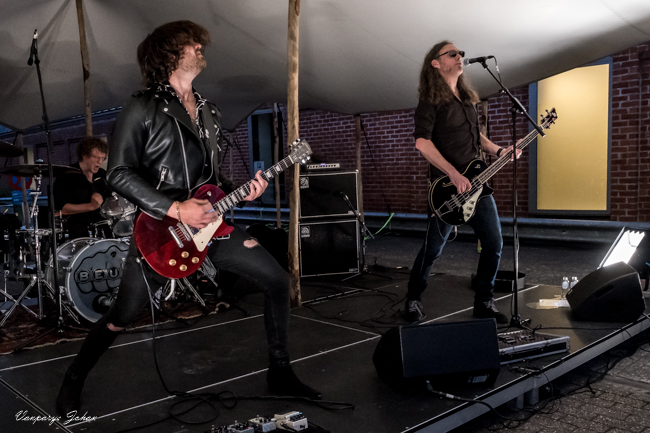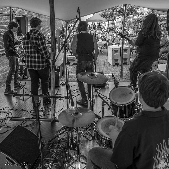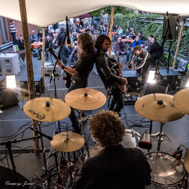 Goe Poeier trapte met verve de avond op gang. De jonge snaken – gemiddelde leeftijd: 16 jaar – grasduinen in het brede repertoire van blues en classic rock. Ze spelen voornamelijk covers van AC/DC tot ZZ Top en alles daar tussenin. We hoorden onder meer CCR, Muddy Waters en The Rolling Stones. Na bijna drie jaar samen spelen groeiden er enkele fijne eigen nummers in dezelfde stijl. Live wordt Goe Poeier getrokken door energieke frontman Angello Atim en gitarist Matteo Rasemont, steunend op de ritmesectie van tweelingbroers Ibe en Rune Deduytschaver. Saxofonist Jaffe De Naegel geeft extra kleur aan de sound. Dit vijftal zette het rockterras voor de eerste keer in lichterlaaie.