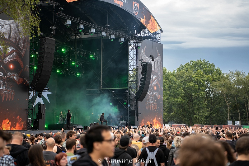 We gingen naar de North Stage, waar de Zweedse metalband Amaranthe het podium betrad. Hun unieke mix van extreme metal en elektronische muziek, resulteert in een energieke sound van melodieuze death power metal die het publiek meteen wist te pakken.