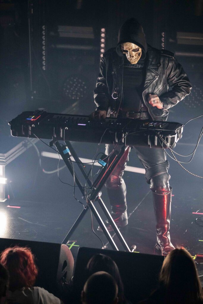 Die rust werd ruw verstoord door de volgende supportband: GosT. Gedaan met de subtiele lichtshow. Het podium werd bekleed met TL-lampen die als enige belichting ritmisch de muziek volgden. GosT is de creatie van de Texaanse producer en multi-instrumentalist James Lollar (herkenbaar aan zijn doodskopmasker). Het album Prophecy verscheen dit jaar. Deze muziek was stukken harder en met testosteron doorweven dan de vorige band en voor ons moeilijk te volgen. We zagen James een combi van synth en dj-set uitvoeren, met korte intermezzo’s waarin hij even weg en weer liep over het podium om toch wat contact met het publiek te maken. Maar hoewel deze band ons minder kon bekoren, leek het publiek hen wel te kunnen smaken.