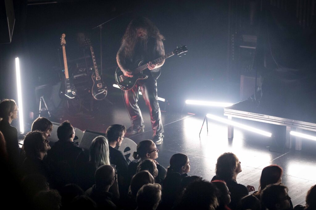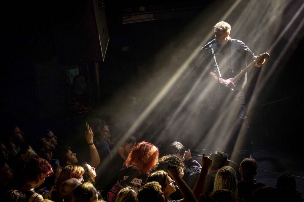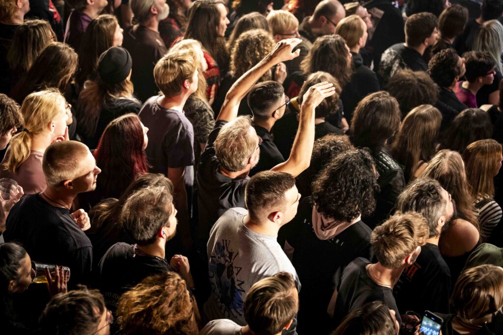 De song op tape die de opkomst van de hoofdact aankondigde was A Cruel Angel’s Thesis van Yoko Takahash. Ons onbekend, maar door de sfeer die ontstond en de anticipatie in de zaal wel een kippenvelmoment. De intro werd gevolgd door het instrumentale Pain van Health, dat ook van tape werd afgespeeld, tot uiteindelijk de band het podium betrad en de set aanvatte met Identity. De zaal was direct volledig mee. We zagen een gemengd publiek. Overwegend zwart gekleed, en een mix van jonge mensen, meisjes met zwarte lippenstift, en grijze hoofden. Veel bandshirts en hier en daar een pluche rat, verwijzend naar de nieuwe plaat. Een uitverkochte zaal die er ontzettend veel zin in had, net als de band. Zoveel was duidelijk.