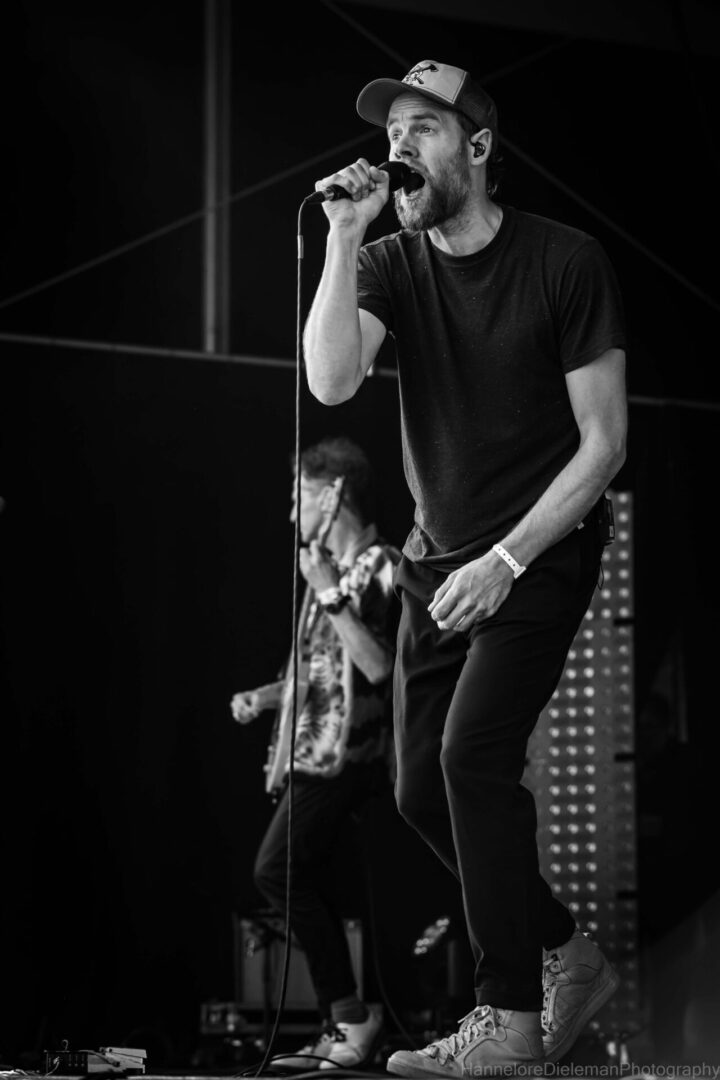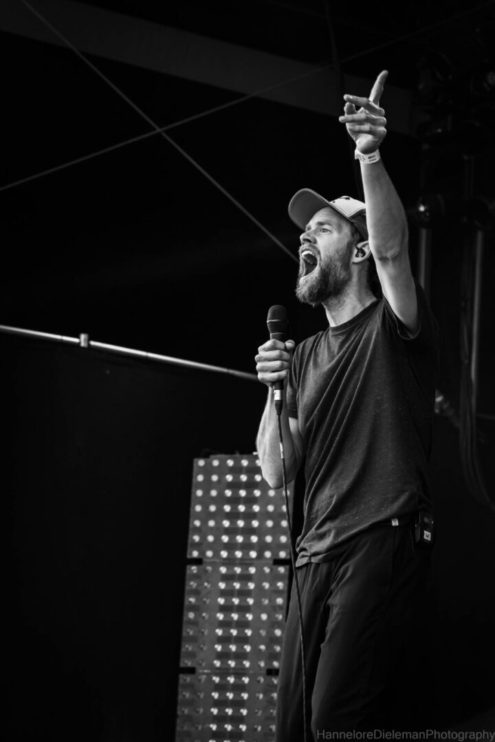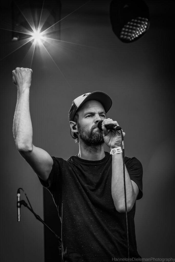 “Zwaaien met de schoenen mag. Maar we verwachten dat niet, we zijn ook al blij als je met je kousen zwaait”, scandeerde de frontman, waarna de band vol overgave Dag Zonder Schoenen speelde.