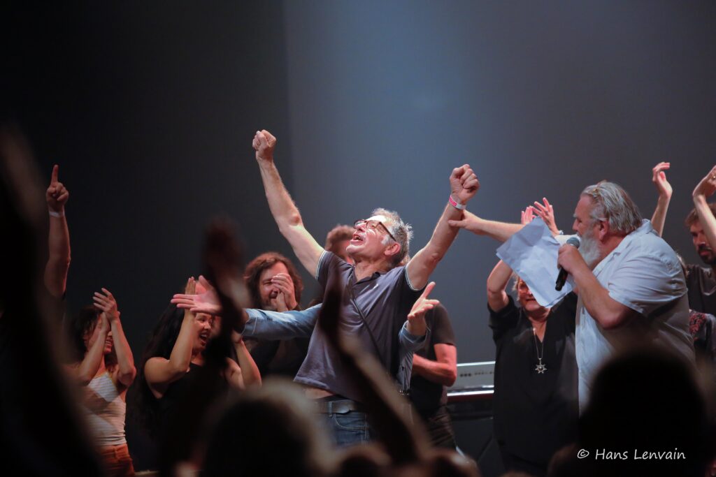 Moesten we niet beter weten, je zou gedacht hebben dat De Dolfijntjes aan het werk waren. “Allez allez, bouger bouger!” Maar we wisten wel beter. Wim heeft Arno ontzettend graag gezien en dit was zijn manier om ons dat te tonen. Wat een feest! Meteen gevolgd door Tango De La Peau. Dubbel feest dus!