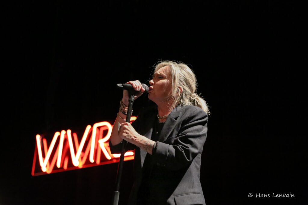 En daar was Patricia Kaas voor de tweede keer met het immens intieme nummer Take Me Back. Maar als je dan dacht dat ze je daar al bij de strot had, dan was je nog niet thuis. Want na dit nummer kwam er een doek naar beneden en voor dat doek kwam ook het alom gekende neon lampje in de vorm van het woord Vivre uit de lucht nedergedaald. Het lampje, ontsproten aan het brein van Danny Willems, was wel degelijk het originele bordje dat bij Arno op het podium hing toen de man, doodziek, zijn allerlaatste concerten afwerkte. Serge Feys zette de eerste noten in van Les Yeux de Ma Mère en pas dan kon je spreken van bij de strot gegrepen worden… Patricia Kaas was bijzonder toonvast maar soms niet helemaal mee met het ritme. Maar eerlijk? Dat toonde aan dat Patricia ook maar gewoon een mens is want het was duidelijk dat ze enorm geëmotioneerd was tijdens haar zangpartij. Op zo’n momenten mag je gewoon even breken, dat toont enkel maar aan dat je daar puur staat, eerlijk, humaan.