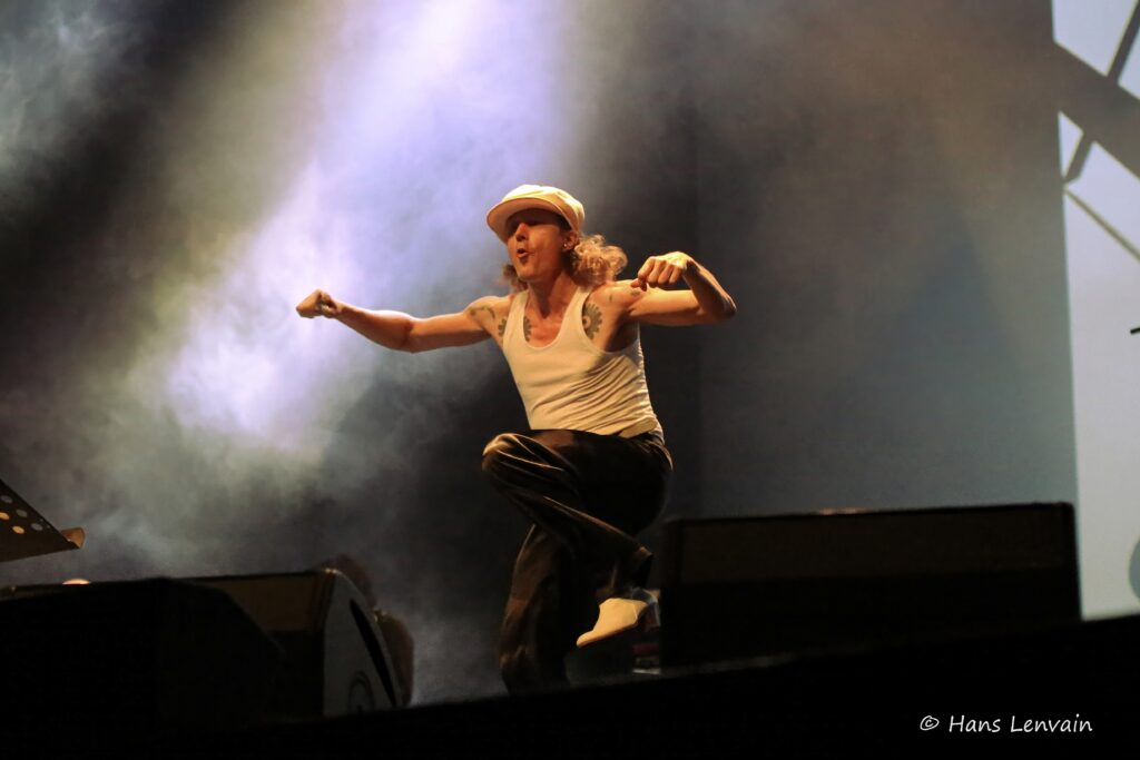 De laatste noot was nog niet helemaal uitgestorven of daar hoorden we de intro van Vive Ma Liberté. En alweer komt PJDS plaatsnemen achter de microfoon. Hoeveel persoonlijkheden heeft deze man eigenlijk? Wat een stomende versie bracht hij van deze Arno-klassieker. Chapeau en respect!