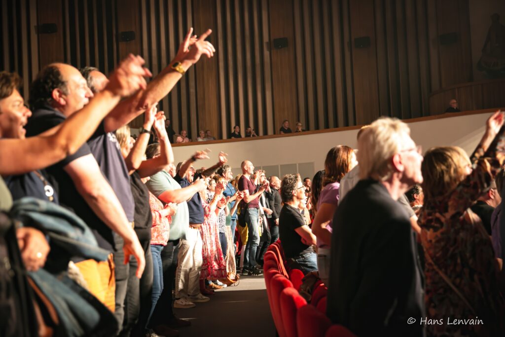 Als afsluiter kwam Wim Opbrouck nog een laatste maal langs voor het nummer Les Filles Du Bord De Mer. We moeten er niet bij vertellen dat de gehele zaal meezong en dat de pluchen zetels al lang geen enkele functie meer hadden. Door de zaal nam iedereen elkaar vast om samen te staan wiegen en ten gepasten tijd “Joint! Joint” te brullen.