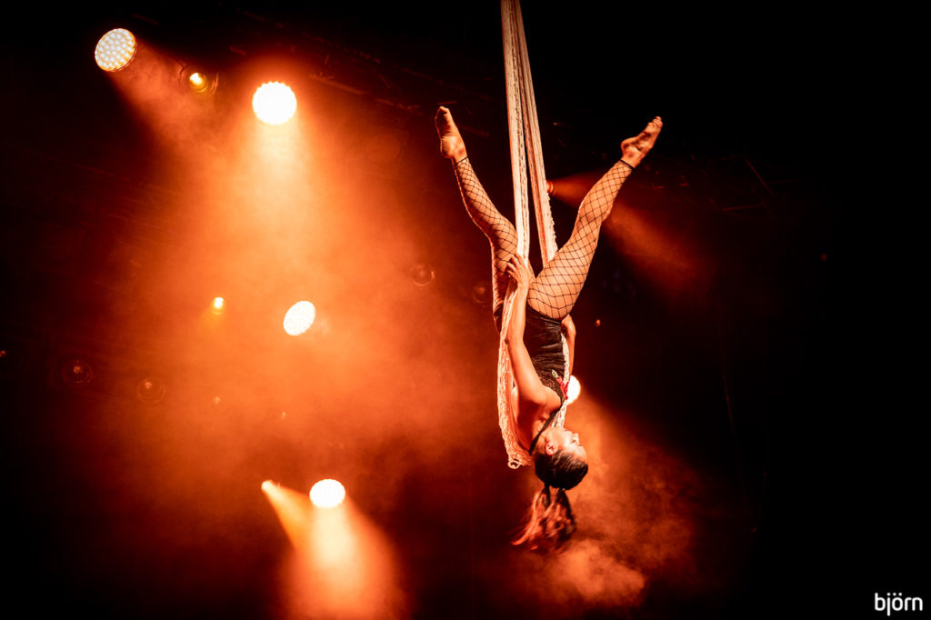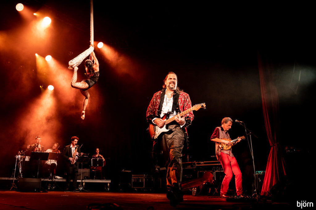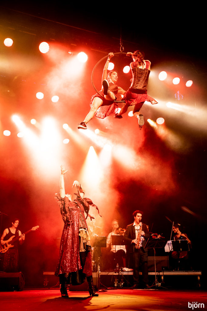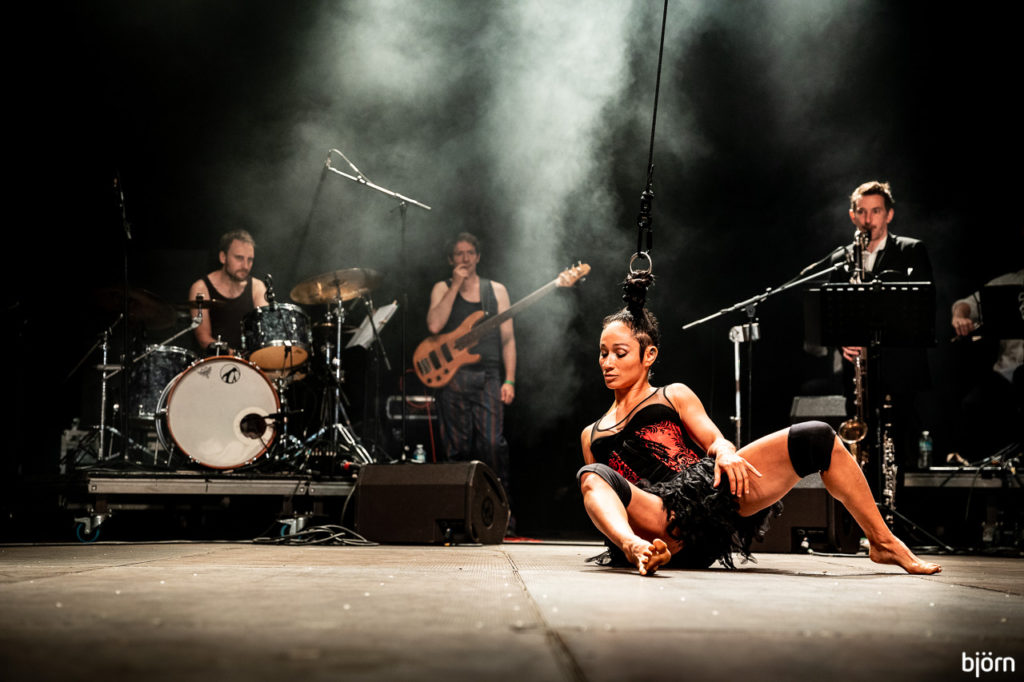 De muziek van Humble Grumble houdt het midden tussen folk, psychedelica, progrock en Frank Zappa en zet je voortdurend op het verkeerde been. De acrobaten van Ilaii halen halsbrekende toeren uit hangend aan een trapeze, een doek, verstrikt in een net of gewoon met mekaars lichaam.