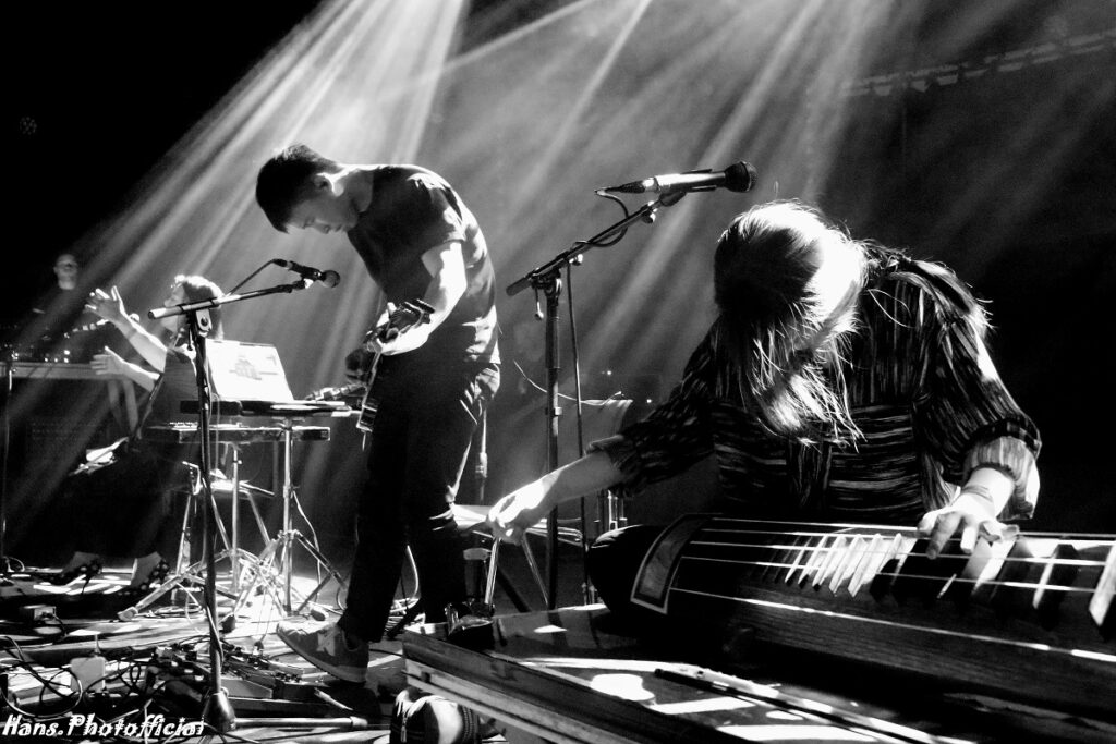 Het technisch oponthoud droeg bij tot de opbouw van een spanningsveld dat uiteindelijk een meerwaarde zou betekenen. Iemand rond ons die de band al méér dan 10 keer aan het werk zag en er ook in Diksmuide bij was zei hierover: “Het was subliem in de 4AD maar ondanks de technische issues was het hier nog een dimensie straffer”. Toen sprak Ilwoo de verlossende woorden ‘thank you so much for your patience, we are good to go’. Meteen weerklonk de schelle klank van zijn blaasinstrument, de ‘piri’ en werd Sawtooth aangesneden. De intro liet ons ook kennismaken met het wondere instrument van de stijlvol uitgedoste Bomi, de haegeum. Dit is een 2-snarige verticale viool waaraan een witte gebogen strijkstok vasthangt. Dit is ook de enige song waarbij Eunyoung haar geomungo met een strijkstok bespeelde.