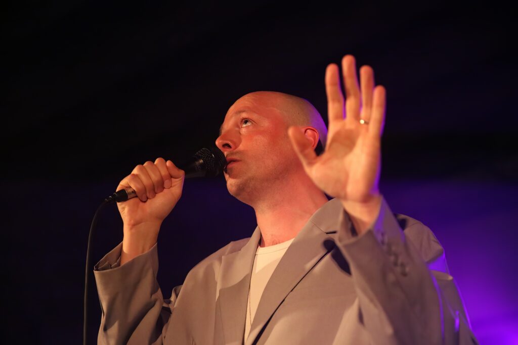 Uitgerekend op zijn lievelingsmoment van de dag, the twilight time (de zon gaat dan onder maar is nog niet helemaal onder), sprong Johannes het podium op en speelde zijn complete album.