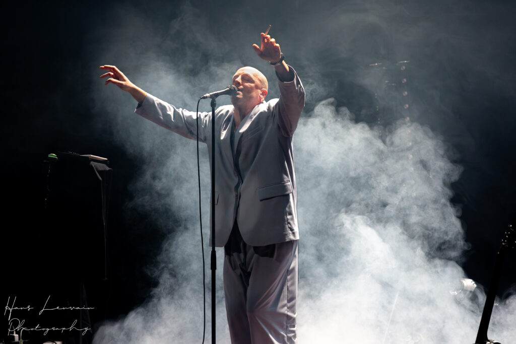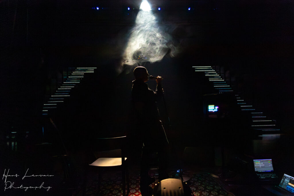 In tegenstelling tot wat we de vorige keren zagen, was Johannes niet meer alleen op de hort met zijn hebben en houden. Hij stond wel nog alleen in zijn wereld op het podium maar het ging om entourage. Er waren nu mensen die zich bezig hielden met de merch, vragen beantwoordden aan lastige mensen die een verslag wilden schrijven, mensen die zijn sound en licht kenden, mensen die het soort foto’s maakten die Johannes zelf graag ziet. Steeds wat verhullend, korrelig, wat rauw soms,…