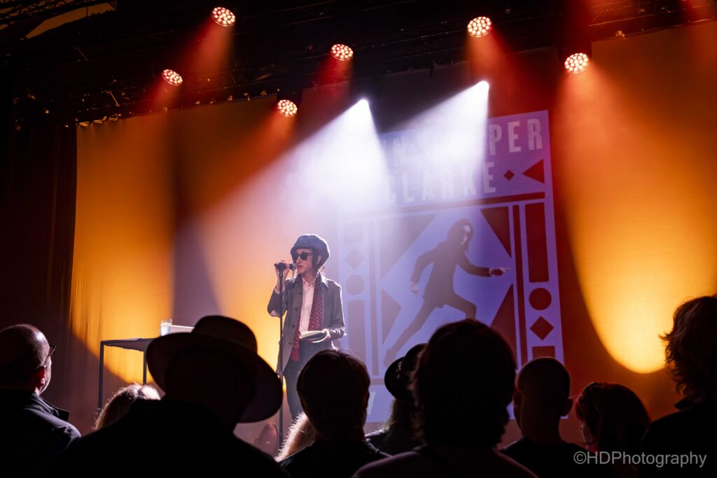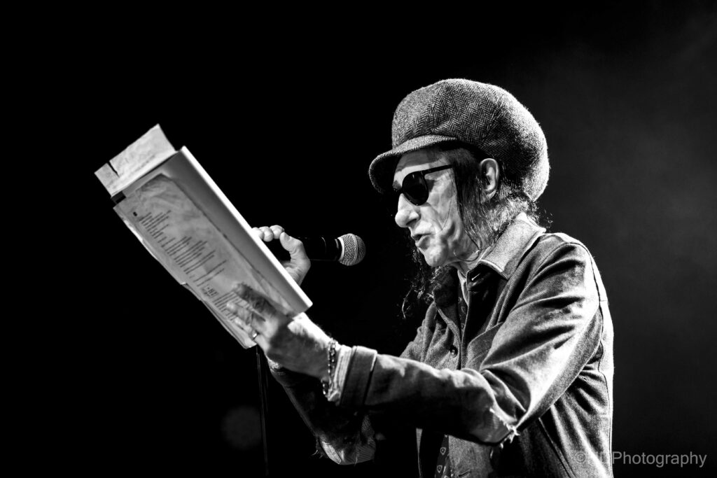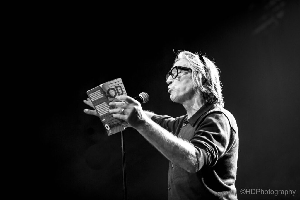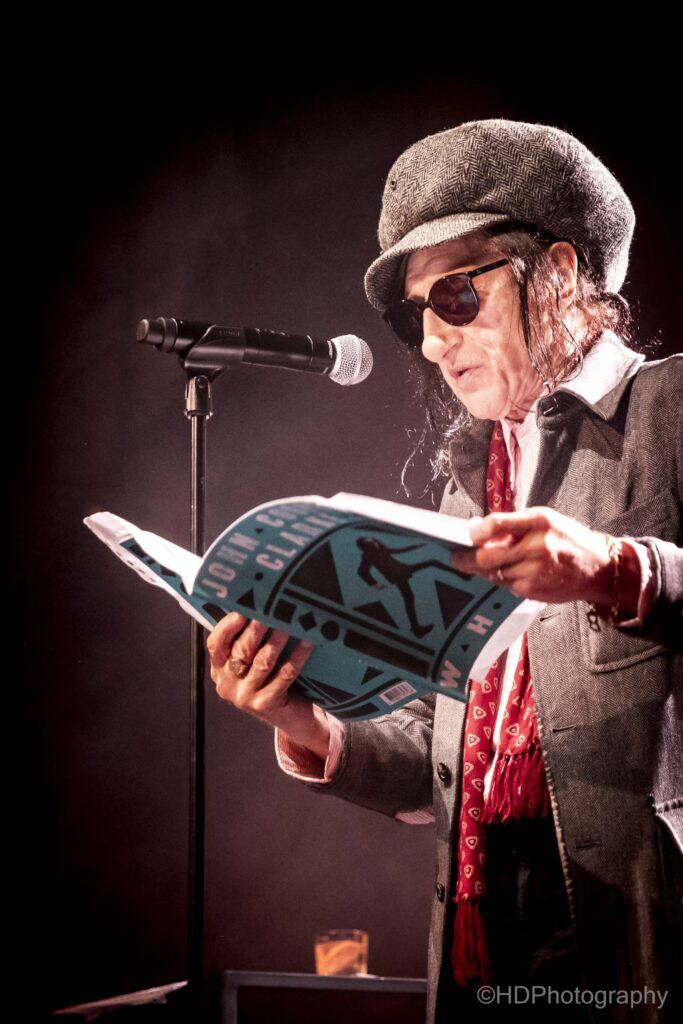 Na deze succesvolle opener was het tijd voor het fenomeen waar we vol anticipatie op aan het wachten waren: Dr. John Cooper Clarke. Onder luid gejuich betrad de man het podium en na wat inleidende woorden en grapjes, begon hij met Guest List. Hij grapte vooraf dat al wie gratis binnen mocht en niet op zijn lijst stond, alsnog zou moeten betalen an wel vertrekken.