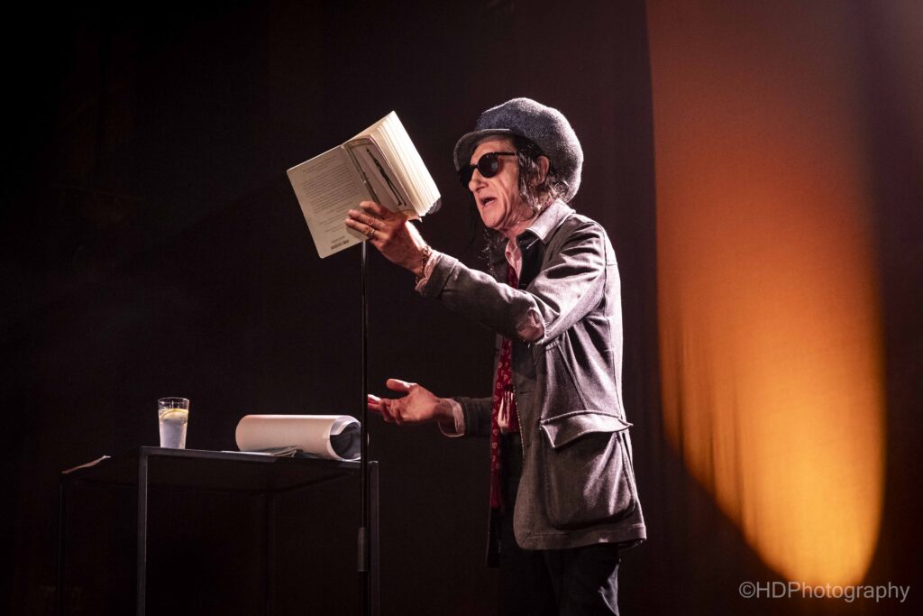 We kregen een uitgebalanceerde mengeling van Britse stand-up comedy met een hoek af, limericks, het occasionele liedje, jingles (onder meer eentje die hij voor Martini creëerde), haiku’s en volwaardige gedichten. En hoewel zijn stem het enige instrument was, voelde de avond toch erg muzikaal, en uiteraard heel erg punk. Op een bepaald moment verwees hij zelfs naar ons eigenste Eddy Wally (God weet welk opzoekingswerk daaraan vooraf is gegaan).
