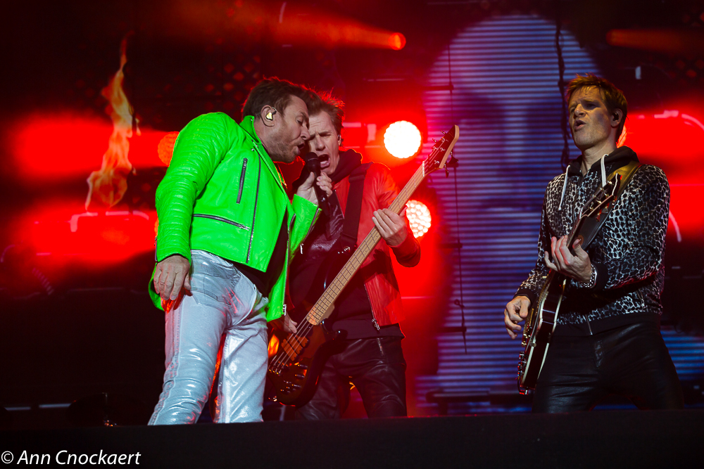 Oekraïne was nog niet vernoemd vandaag. Ordinary World werd opgedragen aan de inwoners van dit gruwelijk geteisterde land. Maar Tonight waren we in Zeebrugge wel degelijk United want this is Planet Earth. Een nieuw zinderend hoogtepunt waarna Simon de band voorstelde en zichzelf uiteraard niet vergat. De hele avond al stond de band uitstekend te musiceren en het leek alsof ze elkaar steeds meer naar een hoger niveau tilden want wat een heerlijke versie van Hold Back The Rain was dit! De reguliere set werd – niet geheel verrassend – afgesloten met Girls On Film dat in een heerlijke mix werd gegoten met de Calvin Harris-song Acceptable In The 80’s. Voor de bisreeks nam de band ons mee naar het zonovergoten Rio dat ons drie gigahits opleverde om de trip huiswaarts een beetje draaglijk te maken.