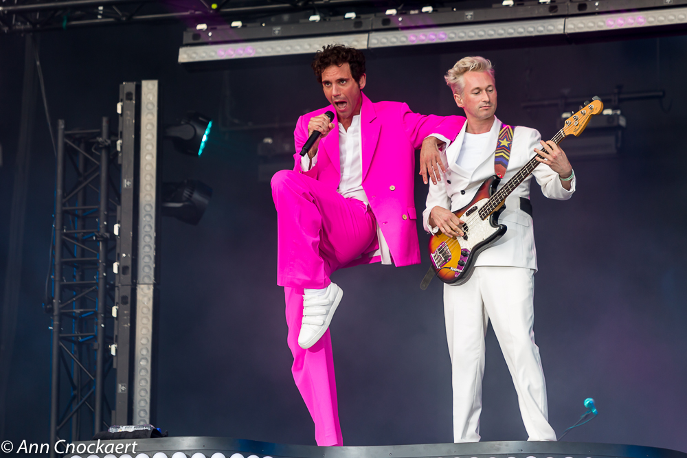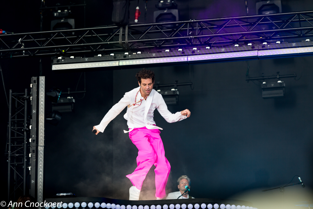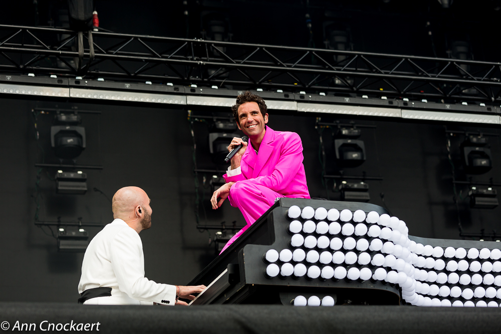 Mika – op geen enkele vocale uitschuiver te betrappen en hij diende nochtans vele hoge toonladders te beklimmen – is een volksmenner pur sang en podiumbeest zoals we ze nog maar zelden show zagen verkopen. Als de nummers als eens te klef dreigden te worden maakte hij dat ruimschoots goed door contact te zoeken met iemand in het zand of uitbundig dansend de schwung er in te houden. Heel knap werk! De kers op de roze taart bracht hij met drie ultieme feestkleppers van jewelste. Love Today, met een alweer geniale doorstart van de song die hij fluisterend en dromerig inzette en waarin hij op unieke wijze zonder muziek het publiek aan het springen kreeg. Rain klonk euforisch en is gewoon een heel straffe popsong die de perfecte aanzet op piano was voor Grace Kelly, in al haar pracht en praal de gedroomde afsluiter van een best wel onvergetelijk concert.