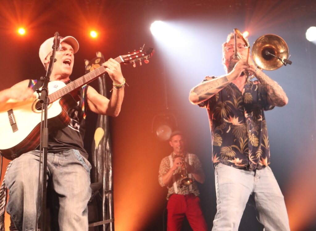 Manu Chao werd door een erg enthousiast publiek ontvangen al een superster. De man nam dat enthousiasme mee in zijn set van meer dan twee uur. Hij had dan ook twee kompanen bij die vol vuur meespeelden. Rumbao zorgde met veel energie voor de percussie en stuurde af en toe de kenmerkende geluidjes de zaal in via een samplepad. Salvadori haalde ondertussen virtuoze gitaarsolo’s uit zijn guitalele en bespeelde met zijn voet de elektronische basdrum. Beide makkers zorgden ook voor sublieme backings.