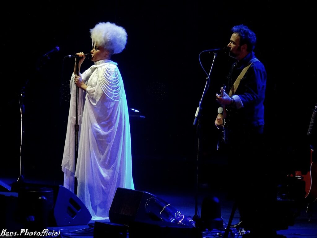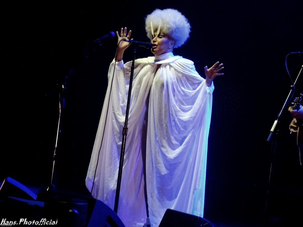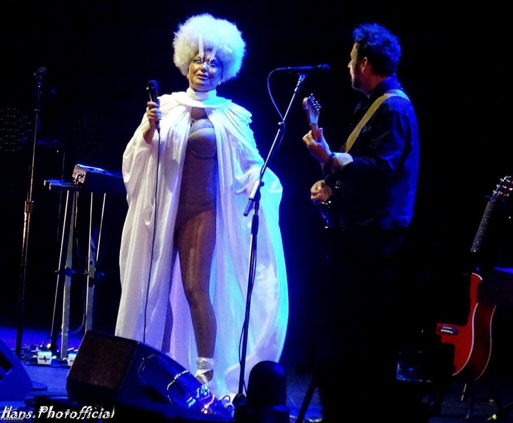 Marley Munroe, de 39-jarige jazz –en soulzangeres uit het Amerikaanse New Mexico kwam onder aanvoering van een galmende echoënde gitaar sneeuwwit uitgedost als Lady Blackbird het podium opgestapt. Een contradictio in terminis zeg maar. En over galmen gesproken…. Een krachtige soulstem die zong over een zwarte vogel die wegvloog. Was die tekst eerst of toch haar artiestennaam? John Parish achtige gitaarriedels werden afgewisseld met Massive Attackerende imposante vocale uithalen. Bijna werd de babbelende massa overstemd. Ze bracht vooral nummers van haar nieuwe plaat Slang Spirituals.