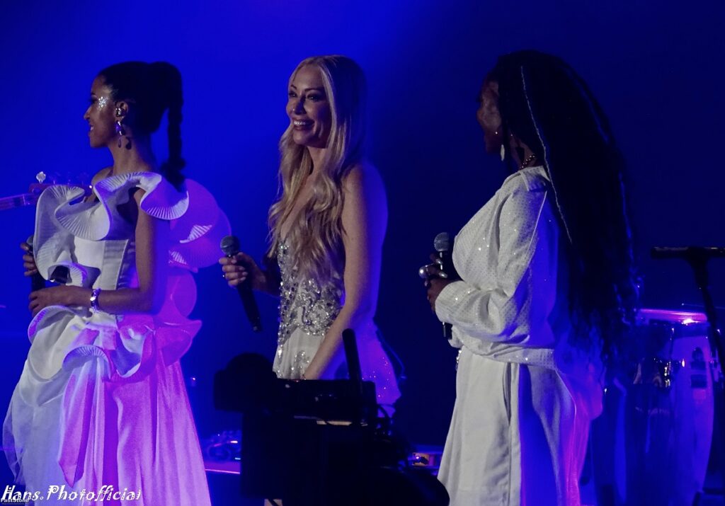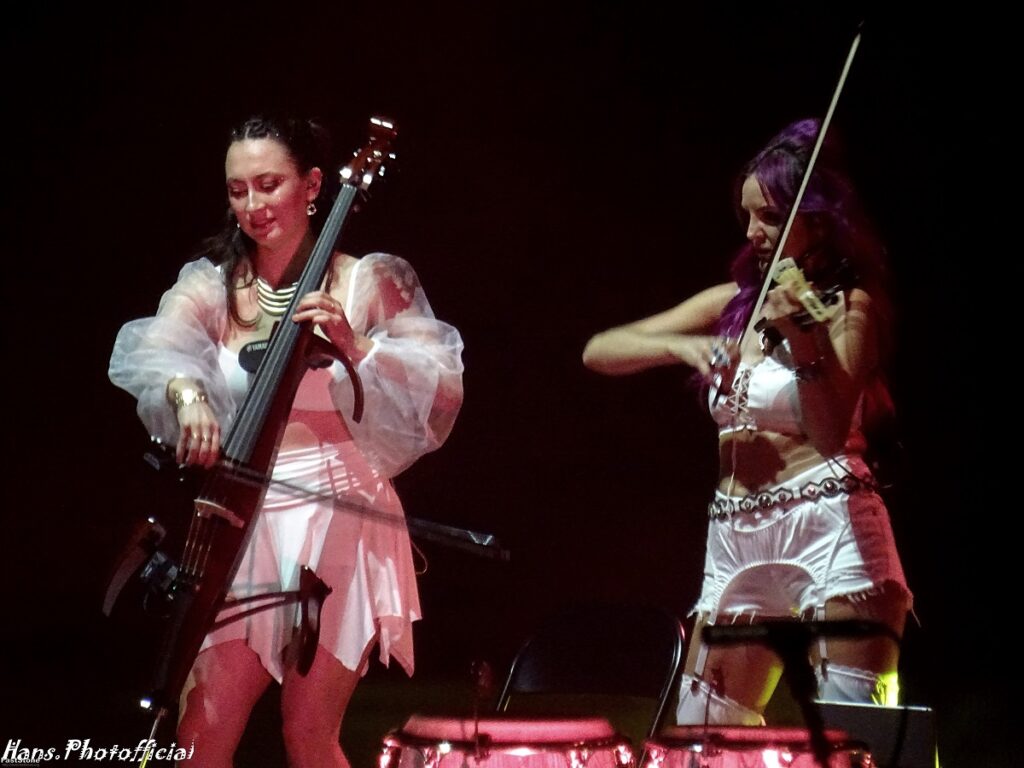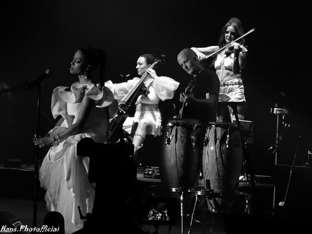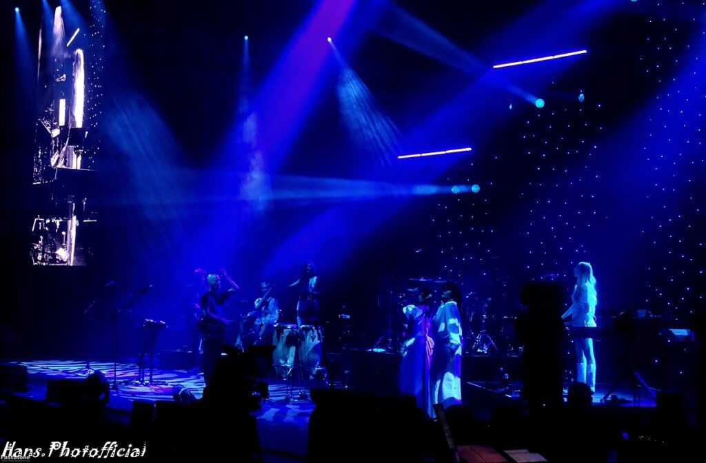 Tijdens de break verscheen Jane Goodall op de schermen om een opgenomen boodschap ter ondersteuning van de jarenlange strijd van Moby voor de dierenrechten te declameren. De zaallichten werden een beetje later opnieuw gedoofd en het podium werd ingenomen door 7 muzikanten. Op de backingtrack-tonen van My Weakness kwamen de drummer en gitarist in een even zwarte eenvoudige outfit als Moby zelf hun positie innemen. Wat een contrast met de oogverblindende outifts van de 5 vrouwen die in prachtige gewaden meteen alle blikken vingen. Het varieerde van uitbundige galakledij over futuristische bling-bling-pakjes tot een cowgirl-ensemble. Het zou absoluut maar een voorbode blijken van een bijzonder indrukwekkende prestatie van de Moby-band waarbij vooral de vrouwen muzikaal hoge ogen gooiden.