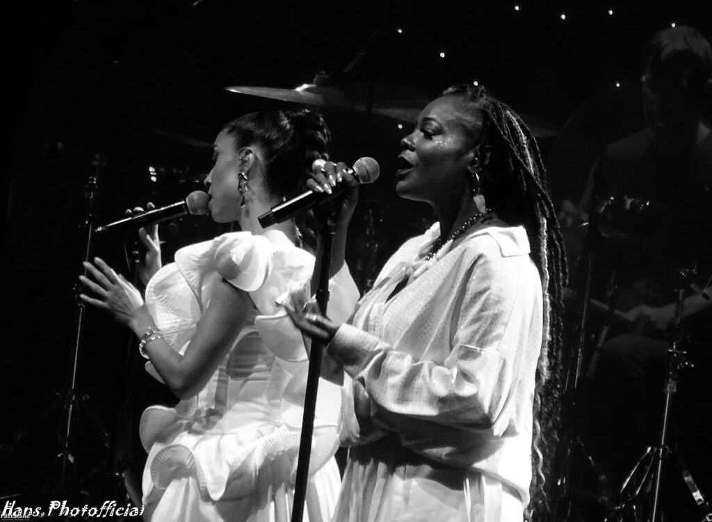 En wat dan gezegd van de ronduit zinneprikkelende combinatiesong waarin Flower, een b-kantje van Play, vermengd werd met Find My Baby, om dan terug onverbloemd in een epische Flower te veranderen. Hoogtijd om een paar blikvangers in de kijker te zetten zoals de beide zangeressen. We zaten eigenlijk een concert lang met open mond te luisteren naar hun ‘vocal range’ en wondermooie harmonieën. Nadia Christine Duggin en Choklate zijn dan ook – Moby is een wereldster dus wat had je gedacht – geen amateurs. Duggin bijvoorbeeld zong al bij Miley Cyrus. Het sprekende gemak waarmee ze elk nummer naar hun hand zetten was ongezien maar vooral ongehoord. Moby is een gelukzakske om met dergelijke toppers aan de slag te gaan. De ronkende keyboards van achtergrondzangeres en Moby’s ‘best friend’” Julie Mintz lichten we verder toe maar zij was misschien wel de meest bepalende factor voor de grandeur die de hele avond door het paleis galmde.