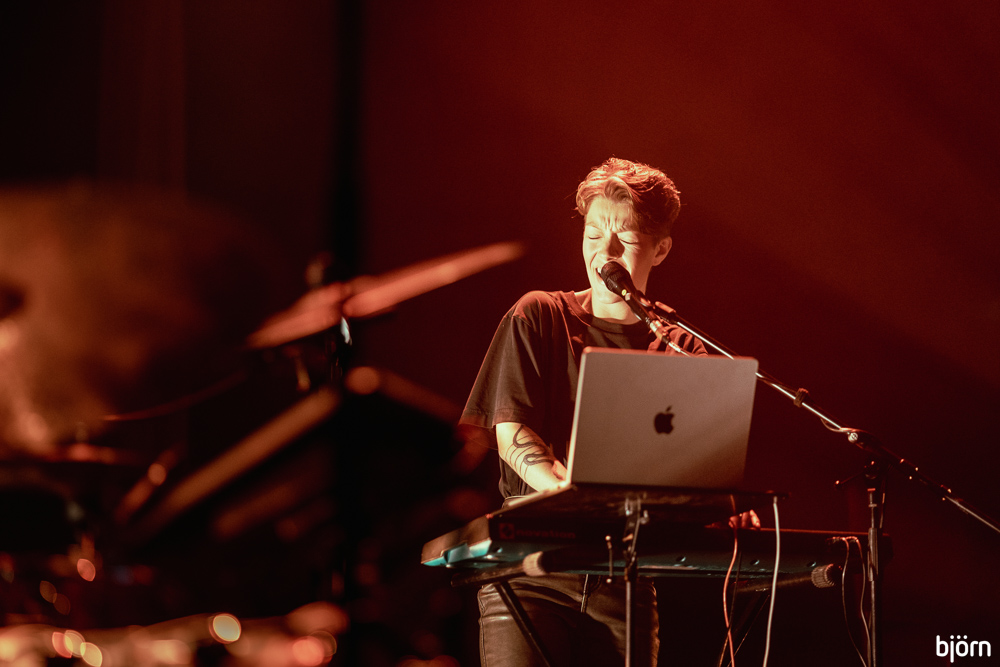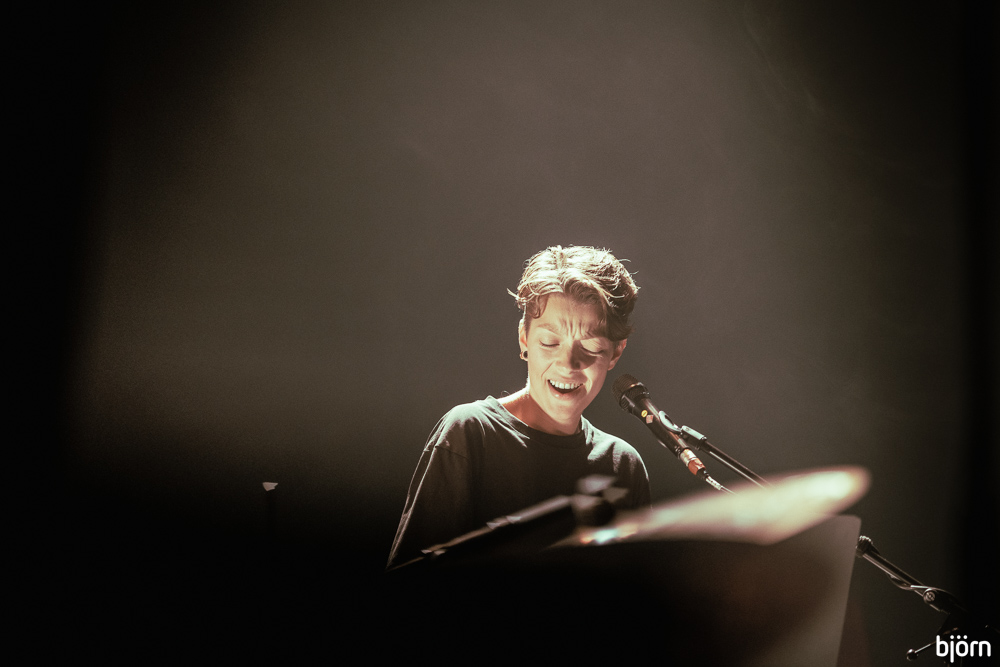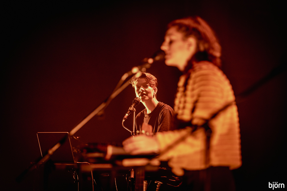 Starten deden ze met ep-opener Golven waarin Muriel meteen in het diepe sprong door a capella te beginnen. Het zat echter allemaal onmiddellijk goed en als na enkele seconden de tweede stem van Eline die van Muriel komt ondersteunen, zijn we vertrokken voor een uurtje vakantie in de fragiele schemerwereld van MURI.