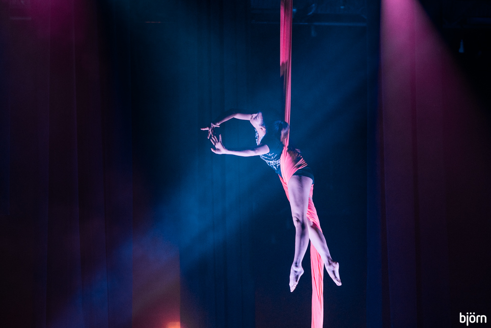 Geen toepasselijker nummer dan Zweven om danser/acrobaat Hazel voor het eerst aan het publiek voor te stellen. Wat ze doet zal wel een fancy naam hebben, maar het kwam erop neer dat ze, hangend aan twee euh… gordijnen, allerlei acrobatische dansbewegingen maakte op muziek. Indrukwekkend, soms spannend maar vooral iets waar we met z’n allen met veel bewondering naar zaten te kijken.
