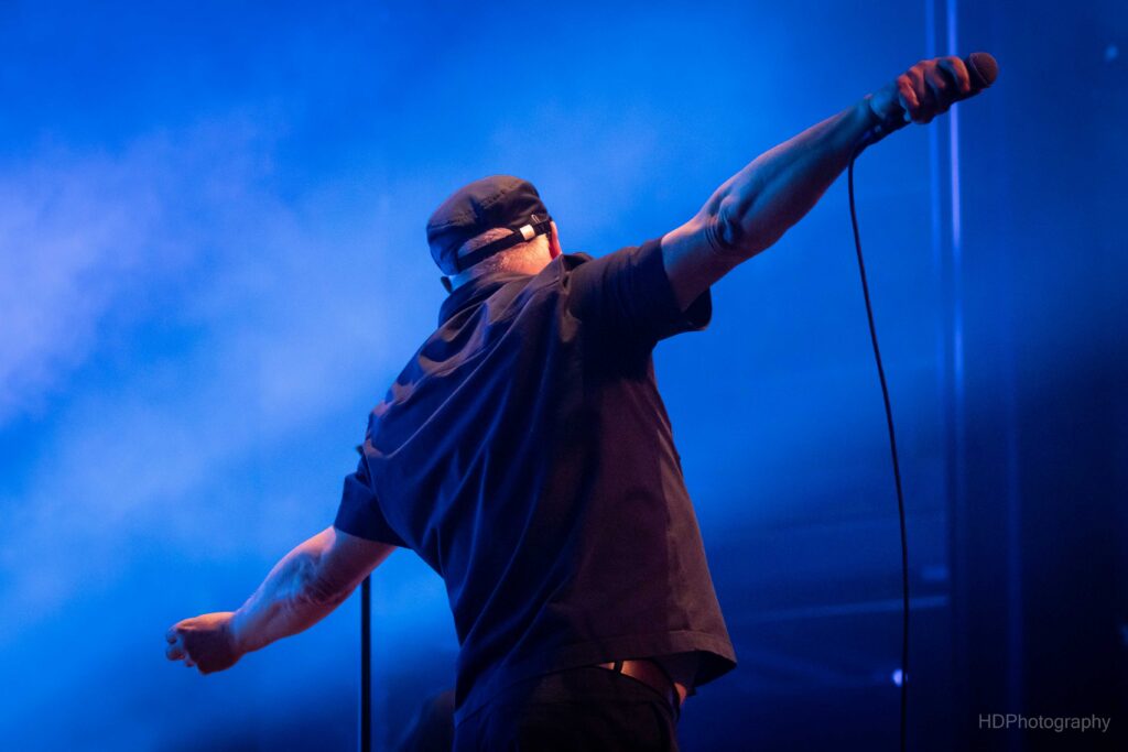 Zijn niet bijna alle nummers van Noordkaap ondertussen hits geworden, zou men zich kunnen afvragen? In ieder geval bijna allemaal meezingers, zo getuigde de zaal. Panamarenko, Satelliet Suzy, Als Ik s’ Nachts Door Veerle Rijdt, Arme Joe (de befaamde Will Tura cover – hier gingen wij, net als iedereen trouwens, total loss) passeerden allemaal de revue. Meuris was in topvorm, spuwt energie en de performante tamboerijn vergezelde hem zoals we dat kennen doorheen de set, soms vliegend door de lucht, soms wachtend op een nieuwe explosie.