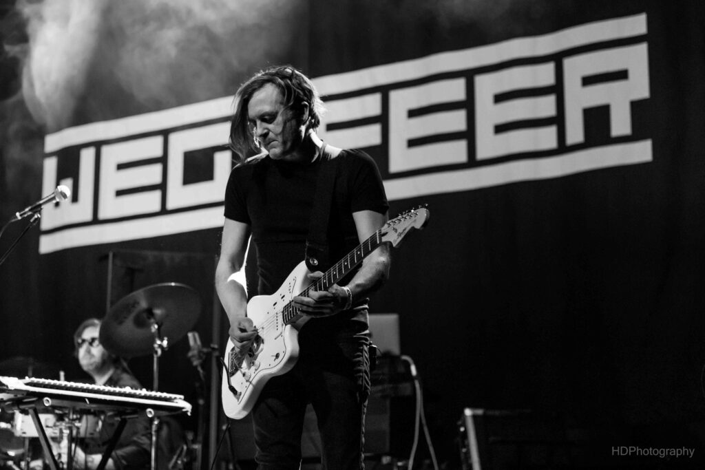 Wegsfeer, een eerbetoon aan legendarische newwavebands met covers van culthits, blijkt een combinatie van uitstekende muzikanten van onder meer Les Truttes en Meuris: Filip Heyens (zang), Nico Westelinck (drums), Kris Delacourt (gitaar) en Bart Van Lierde (bas). De set start stevig en overtuigend met Caucasian Walk van The Virgin Prunes, gevolgd door Transmission van Joy Division. De zaal, ondertussen goed volgelopen, reageert enthousiast. Zanger Filip Heylens smijt zich volledig. En het publiek gaat mee.
