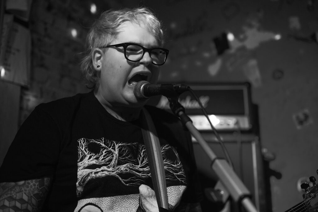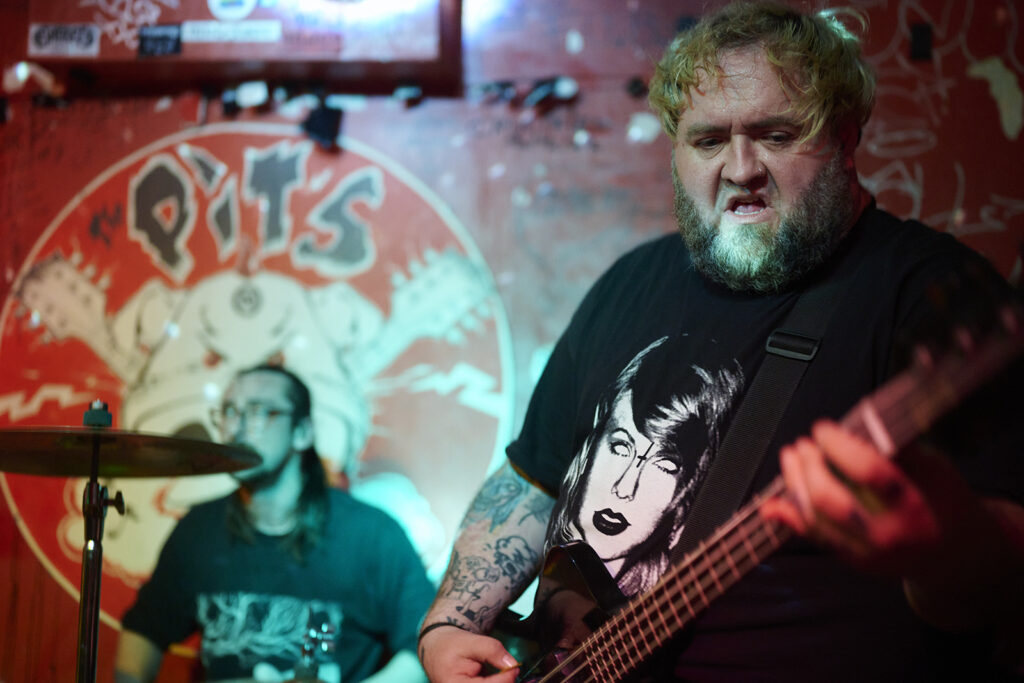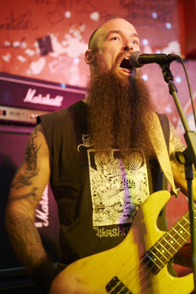 Het trio Body Void, waarvan we voor het concert nooit eerder een noot hoorden, had een schriele, glimlachende drummer, een mastodont (een sequoia bijna) van een bassist en een kloeke gitarist annex schreeuwlelijk in de rangen. Primitive Man in een noisebad met een door merg en been gaande schreeuw erboven op. Onze oren hadden het lastig. De loodzware bas knuppelde ons murw, in zoverre dat we er zowaar hoofdpijn van kregen.